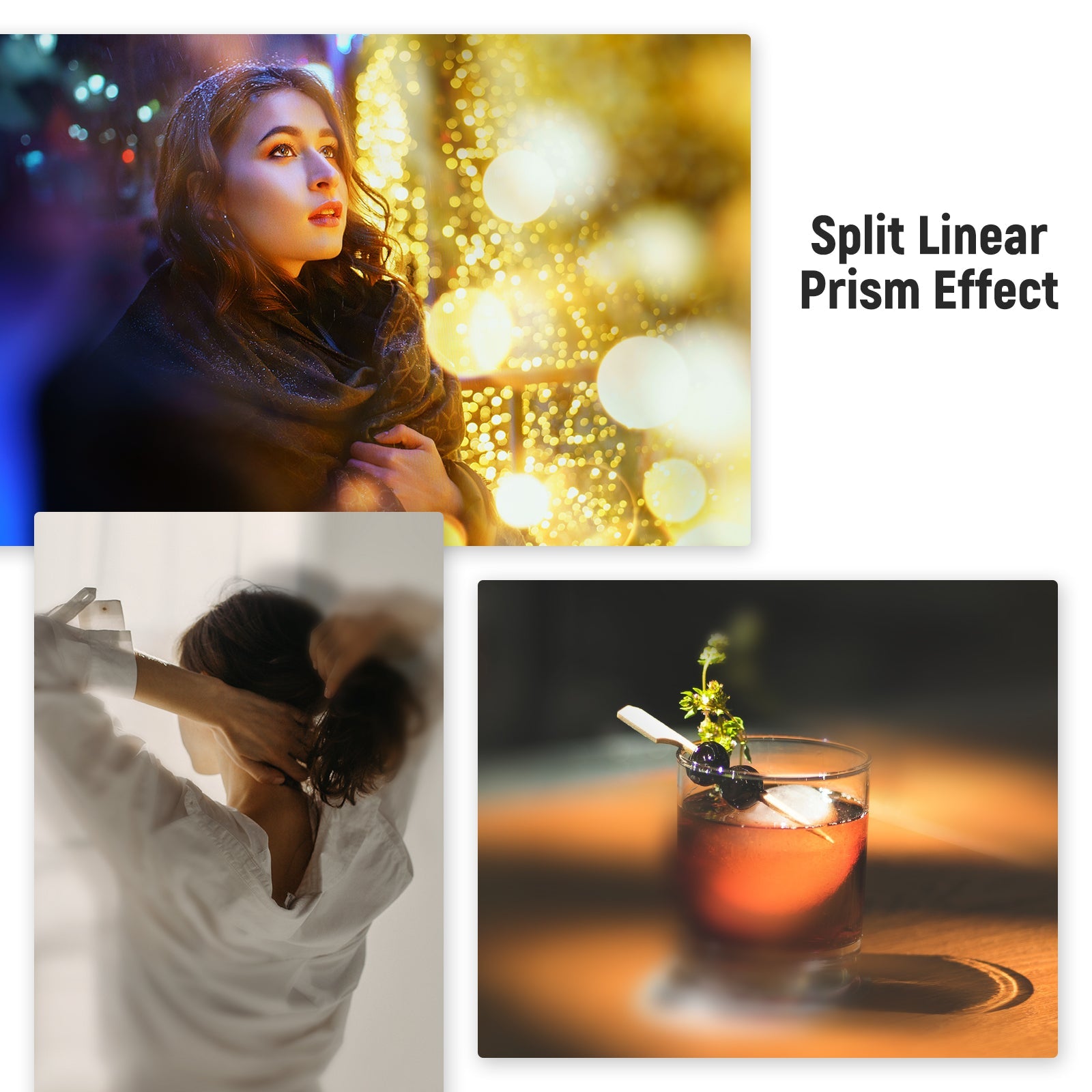 - Mejore el enfoque y la refracción : cree un enfoque cautivador en su sujeto con efectos de desenfoque y refracción de profundidad de campo utilizando este exclusivo filtro de dioptrías. Agrega un efecto de desenfoque en dos lados mientras mantiene la claridad en el centro del encuadre para resaltar el sujeto principal sin más edición posterior.