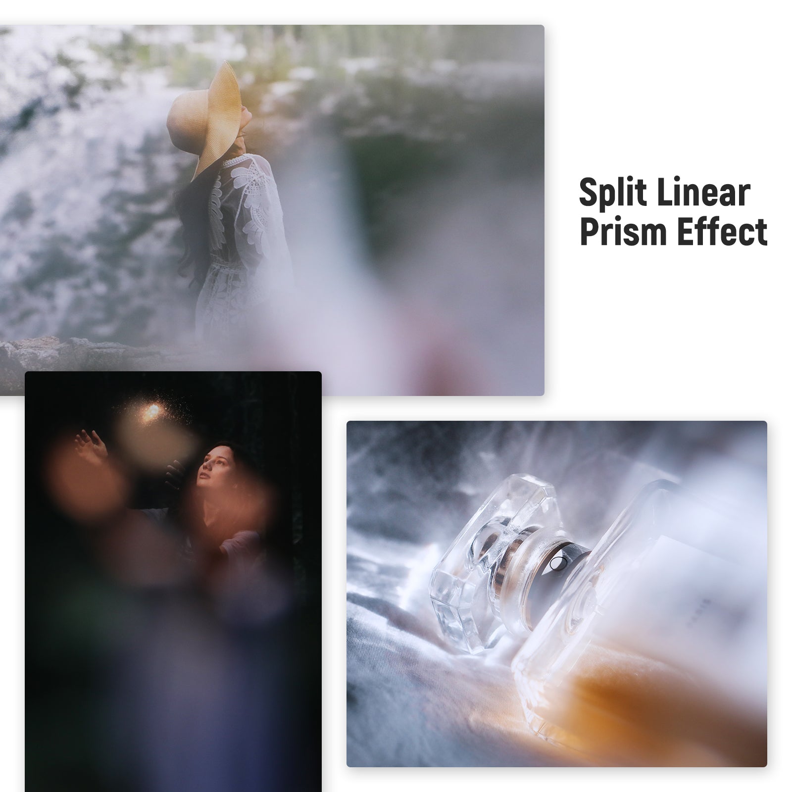 - Filtro de efecto de dioptrías divididas de media cúpula : capture un enfoque dividido distintivo, amplíe la profundidad de campo y resalte elementos específicos en sus tomas fotográficas de películas utilizando este filtro de efectos especiales de prisma de dioptrías divididas portátil. Este filtro de lente de cámara especializado crea un impresionante efecto de desenfoque de primer plano para un impacto visual sorprendente.