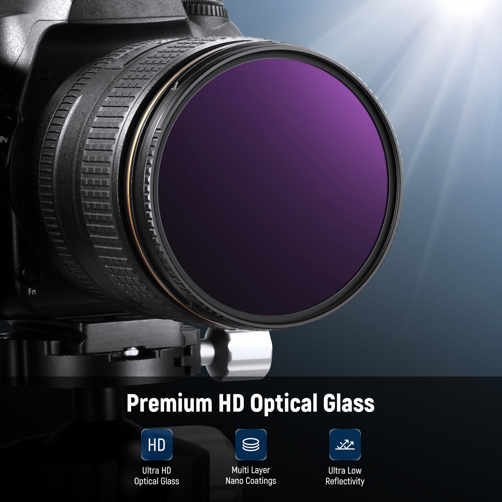 • Filtro exclusivo ultra oscuro ND100000 : capture imágenes excepcionales cuando los cuerpos celestes se alinean, como durante los tránsitos lunares, con nuestro exclusivo filtro ND100000. Está diseñado para proporcionar una reducción de luz de 16,5 pasos, lo que ofrece imágenes nítidas, nítidas y vívidas sin sobreexposición ni coloración, ideal para fotografías de eventos celestes (no mire al sol directamente a través de su cámara).