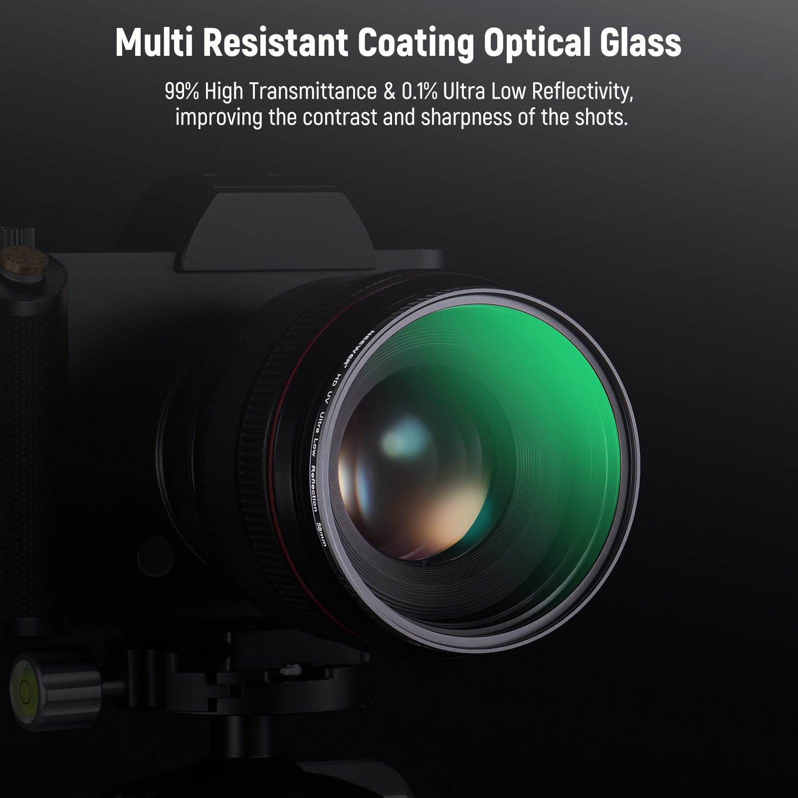 - 99 % de alta transmitancia y 0,1 % de reflectividad ultrabaja : este filtro UV para lente de cámara con vidrio óptico ultra transparente de primera calidad proporciona hasta un 99 % de transmitancia de luz y una reflectividad baja de 0,1 %, lo que mejora el contraste y la nitidez de las tomas.