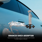 - Absorción de impactos mejorada : este soporte amortiguador de acción cuenta con tres cámaras de goma para compensar las microvibraciones de alta frecuencia durante la grabación y ofrece imágenes fluidas y cinematográficas en un automóvil en movimiento.
