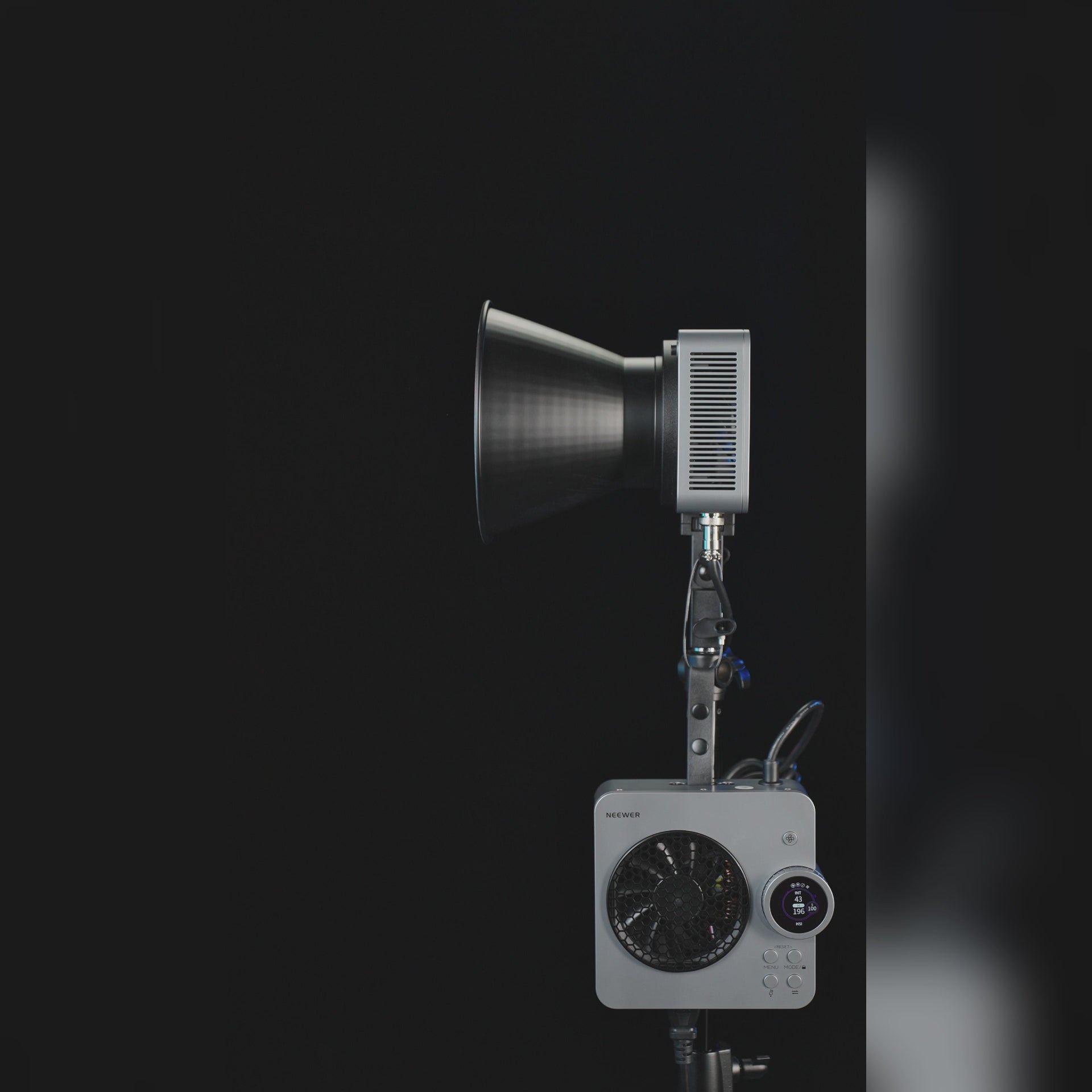 - Doble fuente de alimentación y eficiente disipación del calor : La linterna portátil para cine se alimenta con CA/CC para una iluminación interior prolongada, o con la batería/placa de batería NEEWER BP-2CH Pro V (se vende por separado) para una cómoda grabación en exteriores. Tanto la linterna como el controlador cuentan con ventiladores integrados para una eficiente disipación del calor, con tres modos de ventilación: modo silencioso (100 W), modo constante (210 W) y modo de refuerzo (280 W).