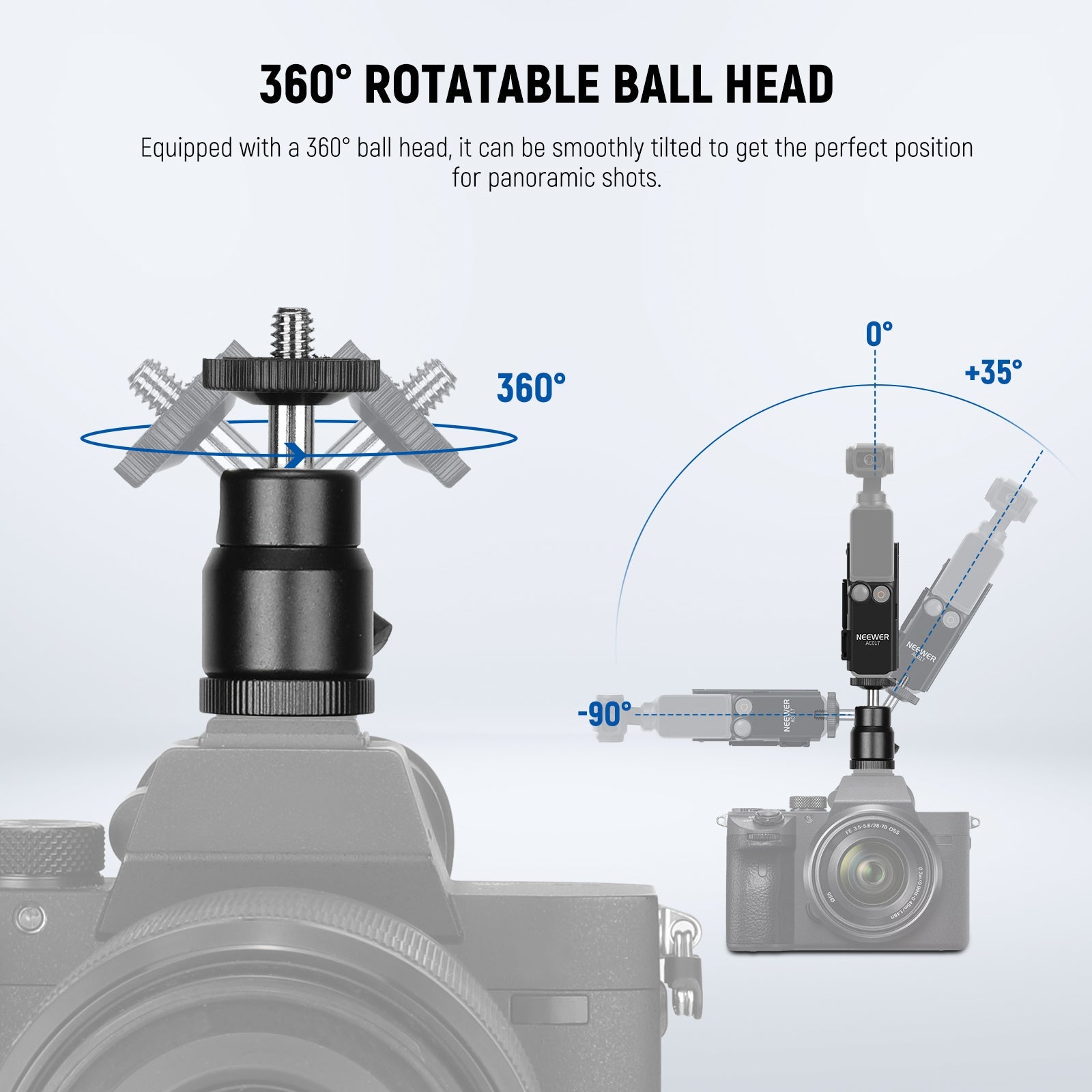 - Flexible Accessory Expansion- The cold shoe ball head with a 1/4" screw offers a secure yet flexible solution for mounting an LED video light or external display onto a DSLR, digital camera, vlog camera, or other hot shoe equipped cameras. The accessory mount allows for 360< rotation, enabling flexible shooting angles. Besides, the cold shoe on the Pocket 3 extension mount facilitates the attachment of a microphone, compact LED light, other other photography accessories