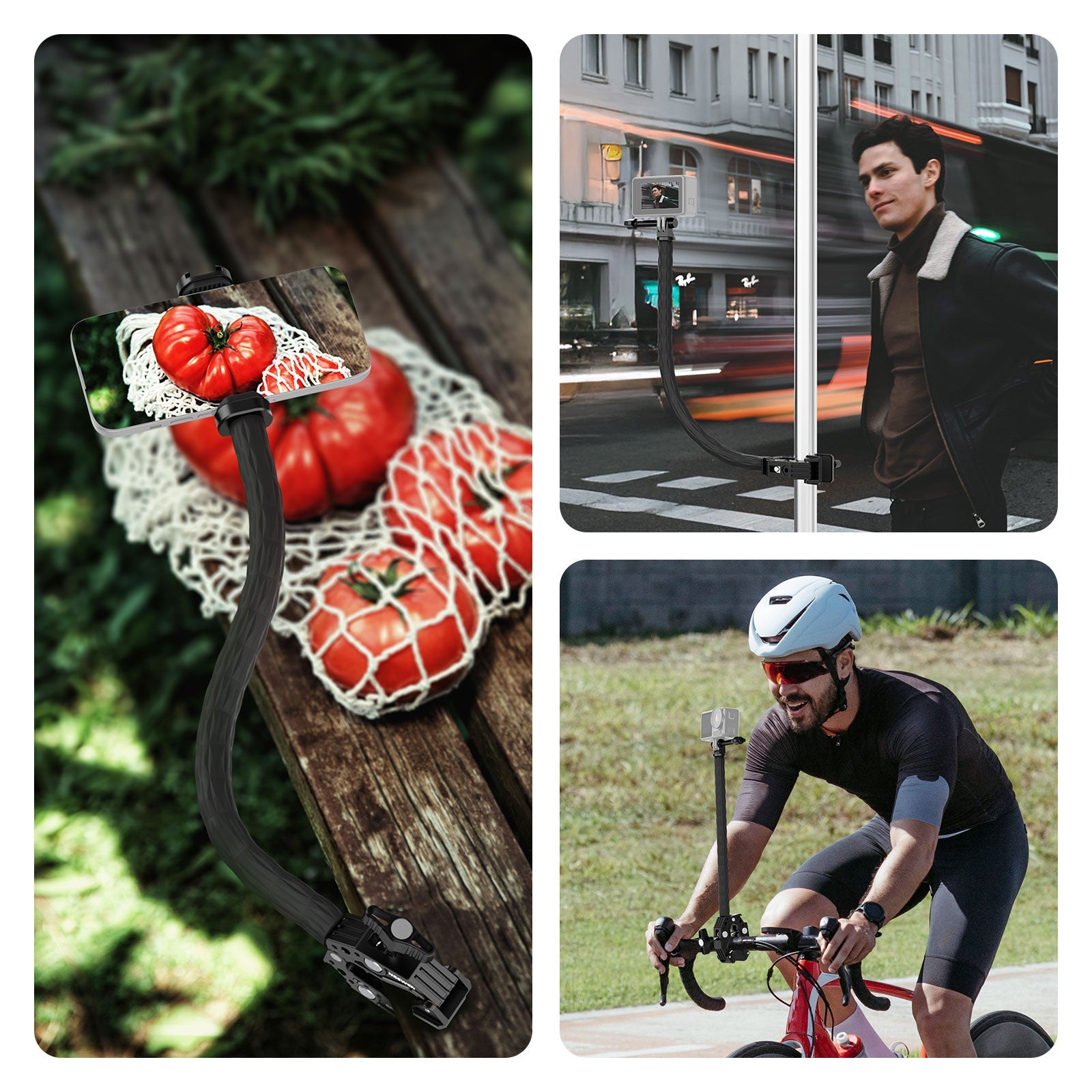 - Tubo blando flexible y maleable : el tubo blando de 10"/25 cm, fabricado con 7 varillas de aluminio y un revestimiento de goma antideslizante, ofrece mayor resistencia y durabilidad para doblarse repetidamente. Su tornillo de 1/4" garantiza una amplia compatibilidad con cámaras de acción y soportes para trípodes de teléfonos de hasta 14 oz/400 g
