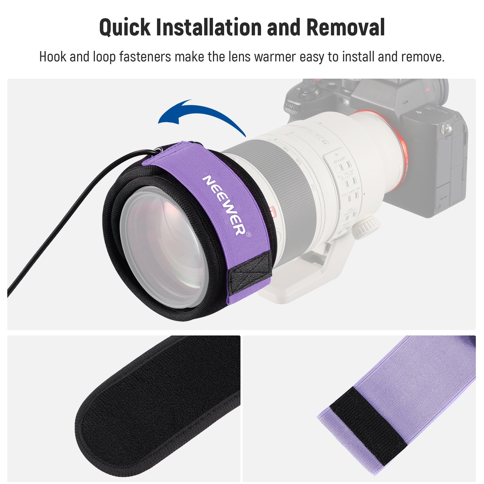 - Longitud efectiva del calentador de 12"/300 mm : elimine el rocío, la niebla y la condensación con nuestro calentador de lentes especialmente diseñado durante la fotografía en climas fríos. Para un rendimiento óptimo y un calentamiento uniforme, se recomienda usarlo en lentes o telescopios con una circunferencia de hasta 12" /300mm y un diámetro de 96mm