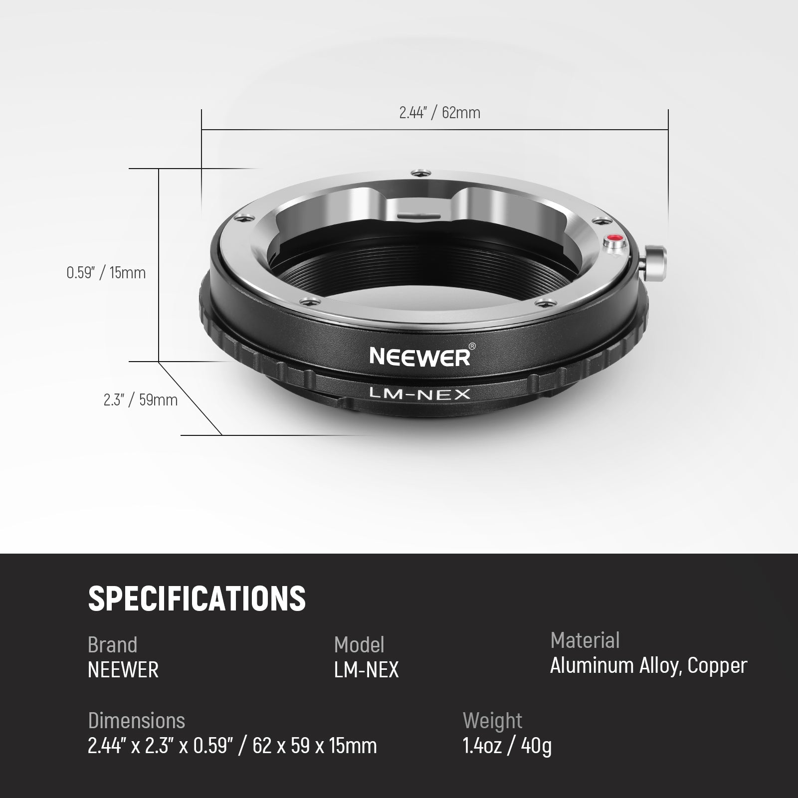 NEEWER LM-NEX Adaptador de Lente para Leica M Mount a Sony E Mount Camera