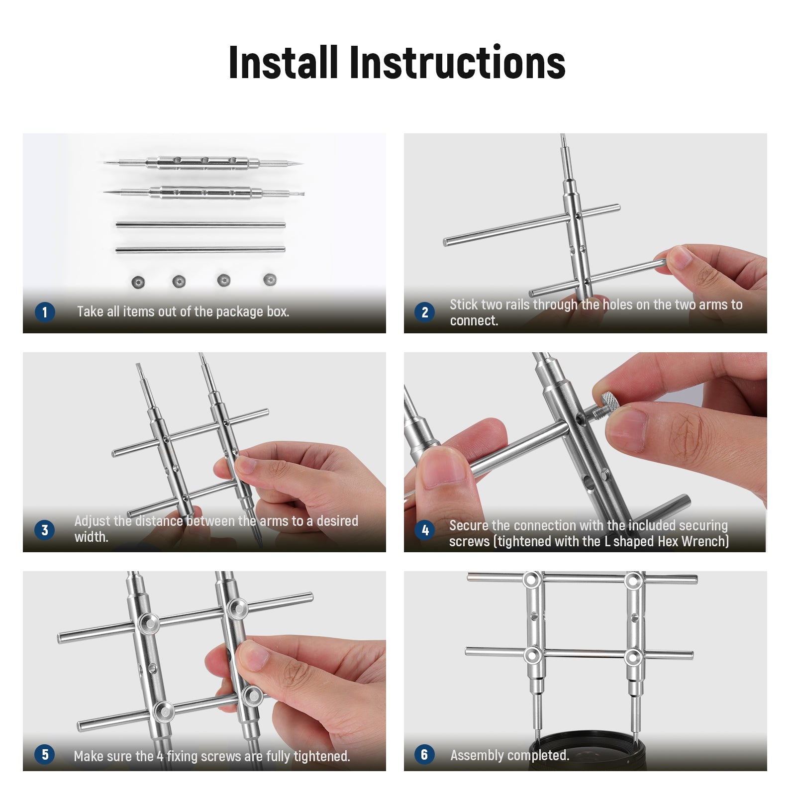 - 6 orificios para tornillos y un diseño de bloqueo de 4 tornillos hacen que la barra transversal sea más flexible para el ajuste.