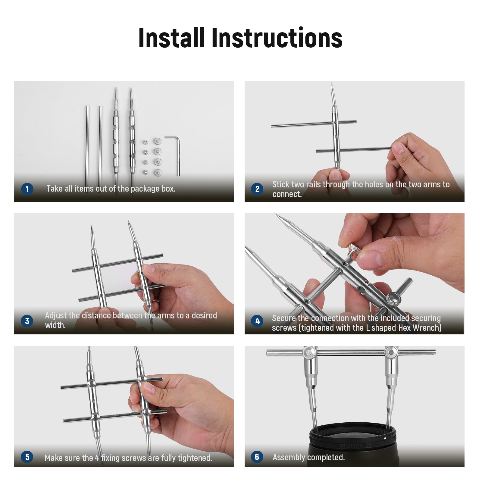 - Puntas de doble cara puntiagudas y planas : esta llave para lentes cuenta con puntas puntiagudas y planas para adaptarse a las muescas estándar y ranuradas de los anillos de retención de lentes, respectivamente. Incluye cuatro tornillos para fijar firmemente los brazos y rieles con mayor estabilidad.