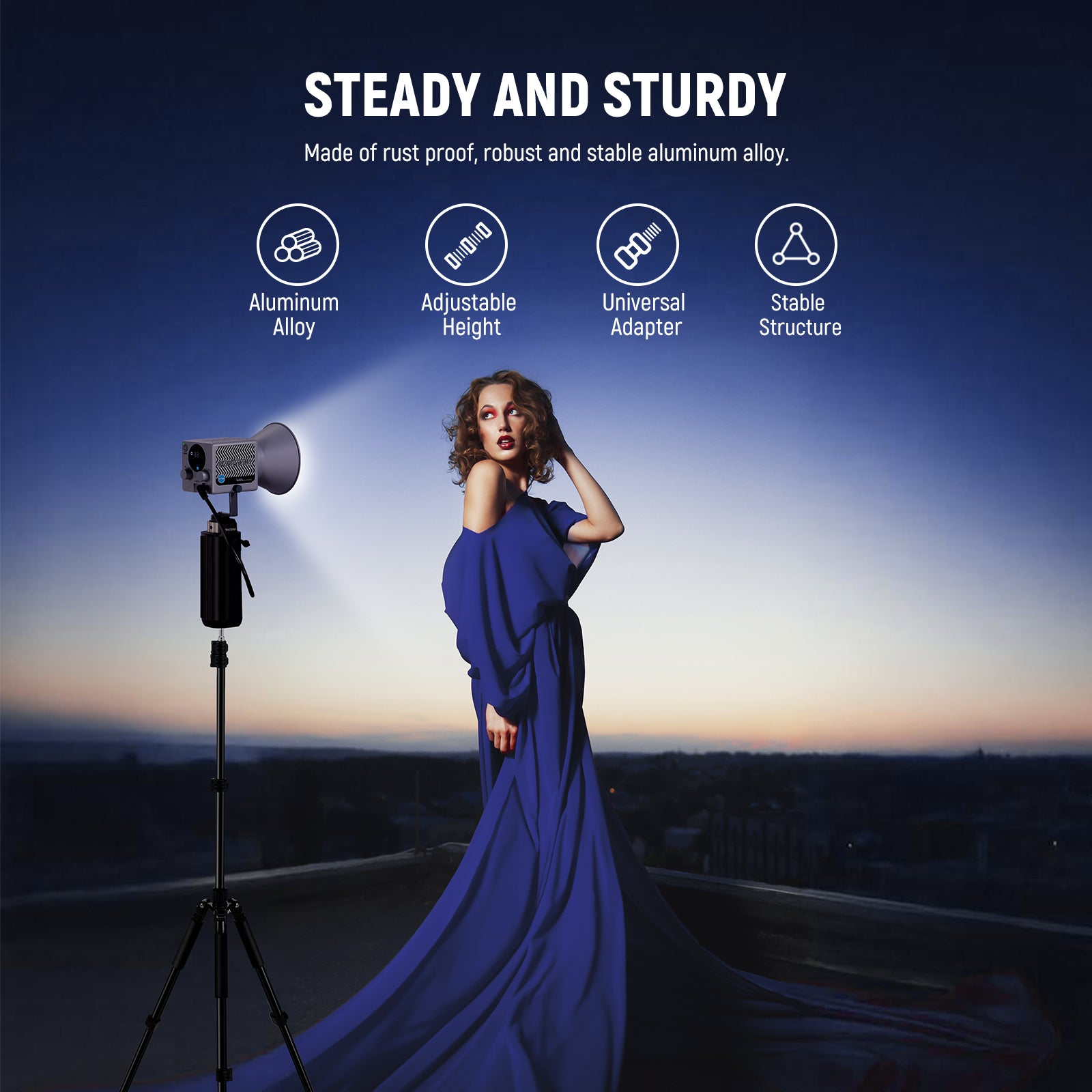 - Soporte de luz de aluminio con capacidad de carga de 3 kg/6,6 lb : fabricado con aluminio resistente con un acabado anodizado, nuestro soporte de luz de estudio es resistente a la oxidación y está diseñado para durar con una capacidad de carga impresionante de hasta 3 kg/6,6 lb. Es un accesorio de fotografía profesional para sostener su luz estroboscópica u otro equipo.