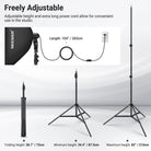 • 83"/210cm Telescopic Light Stand- Designed with 4 sections for flexible and precise height adjustment, the tripod stand extends up to 83"/210cm. Constructed from aluminum alloy, it is robust and rust resistant, providing stable support for your equipment and ensuring an effortless photography lighting setup