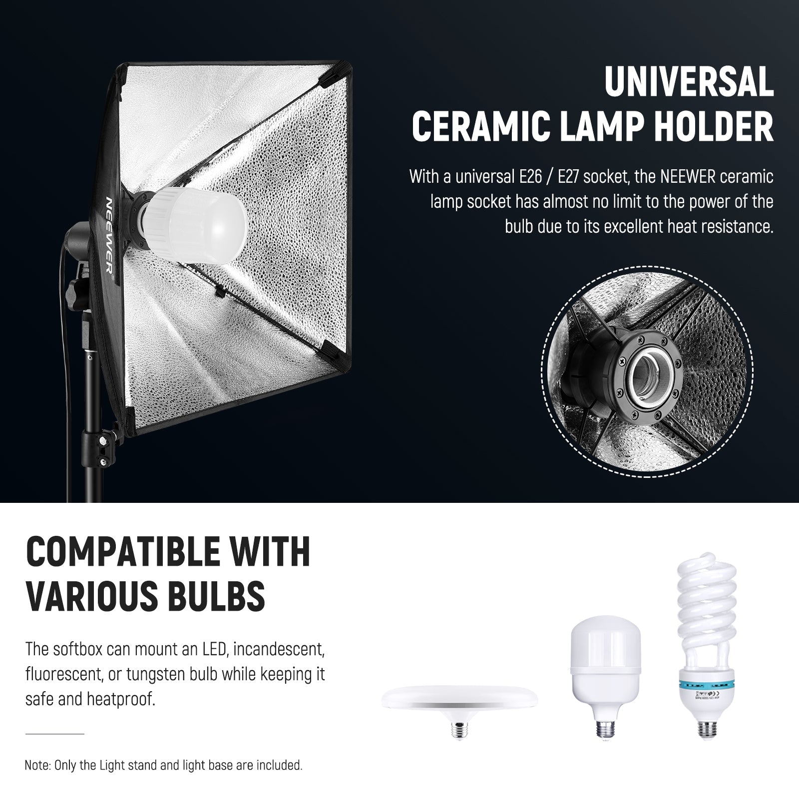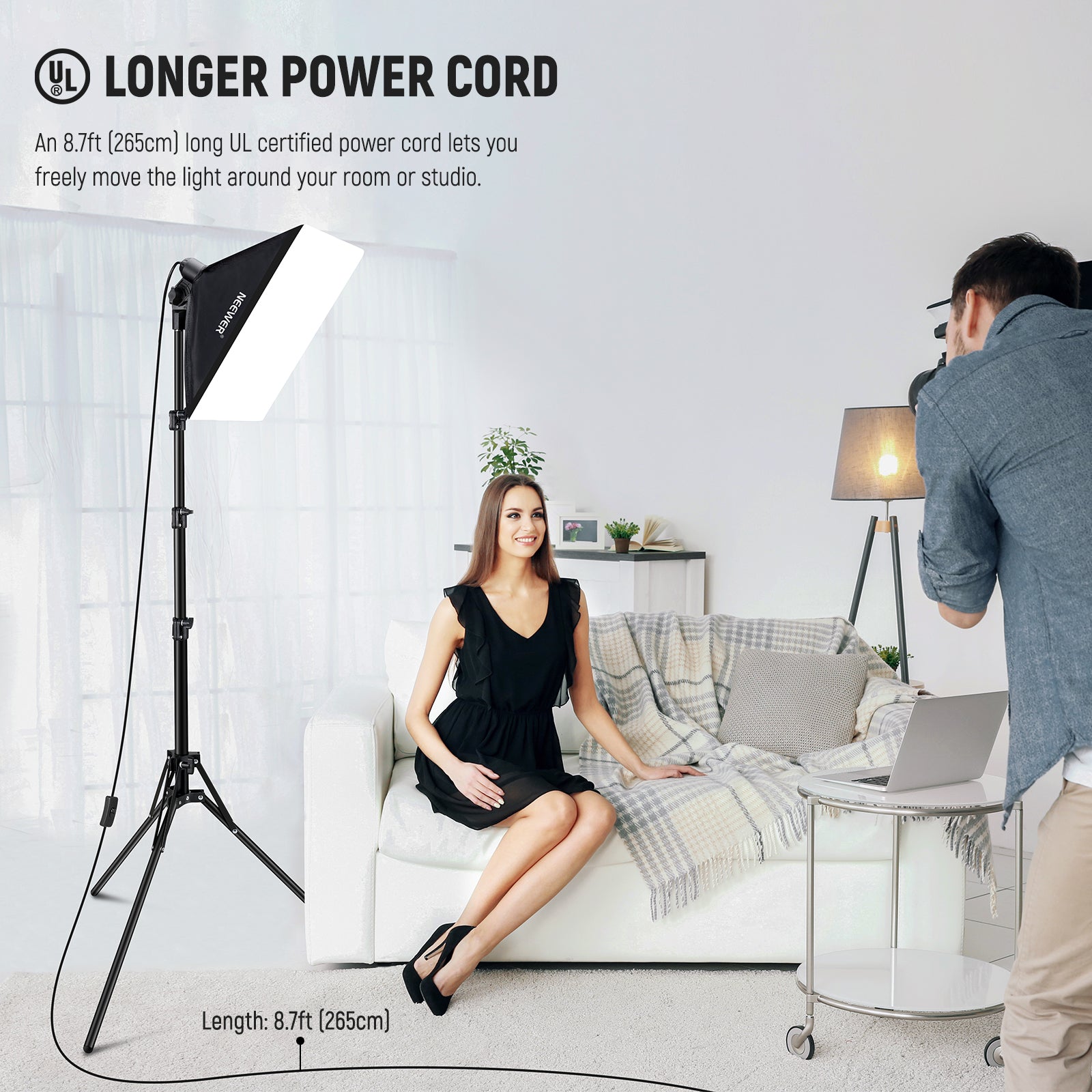 - Portalámparas y cable incorporados : con una base de portalámparas de porcelana universal E26, la caja de luz puede montar una bombilla LED, incandescente, fluorescente o de tungsteno mientras la mantiene segura y resistente al calor. El cable de 265 cm (8,7 pies) de largo hace que la colocación de la luz sea más flexible