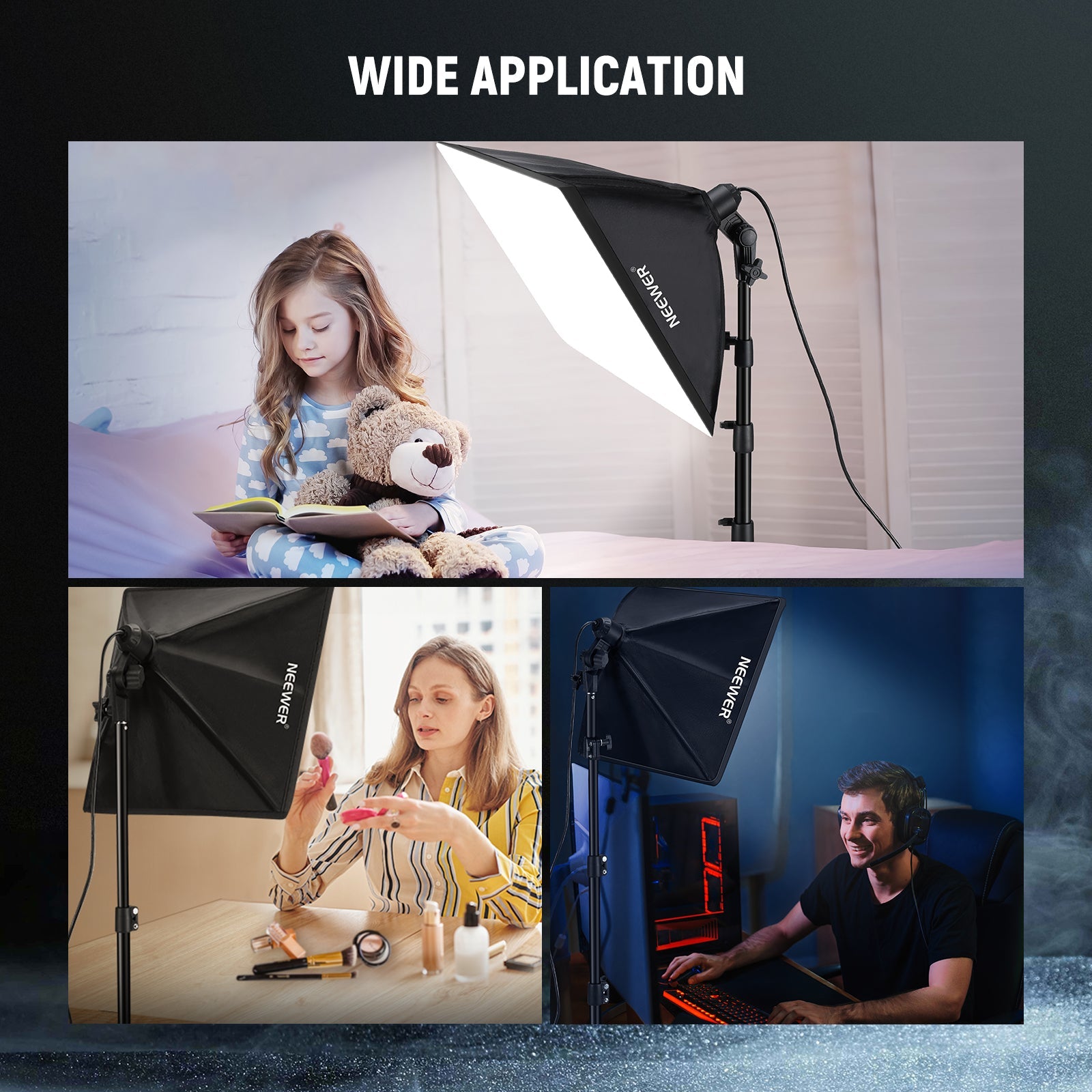 - Amplias aplicaciones : este kit de iluminación de estudio es perfecto para diversas necesidades de fotografía y videografía tanto en el estudio como en el hogar. Ayuda a capturar retratos brillantes pero suaves, fotografías de productos, vídeos de YouTube/TikTok, bodas y fotografías de niños. Además, es una iluminación ideal para grabación de vídeo, transmisión en vivo, juegos y fotografía.