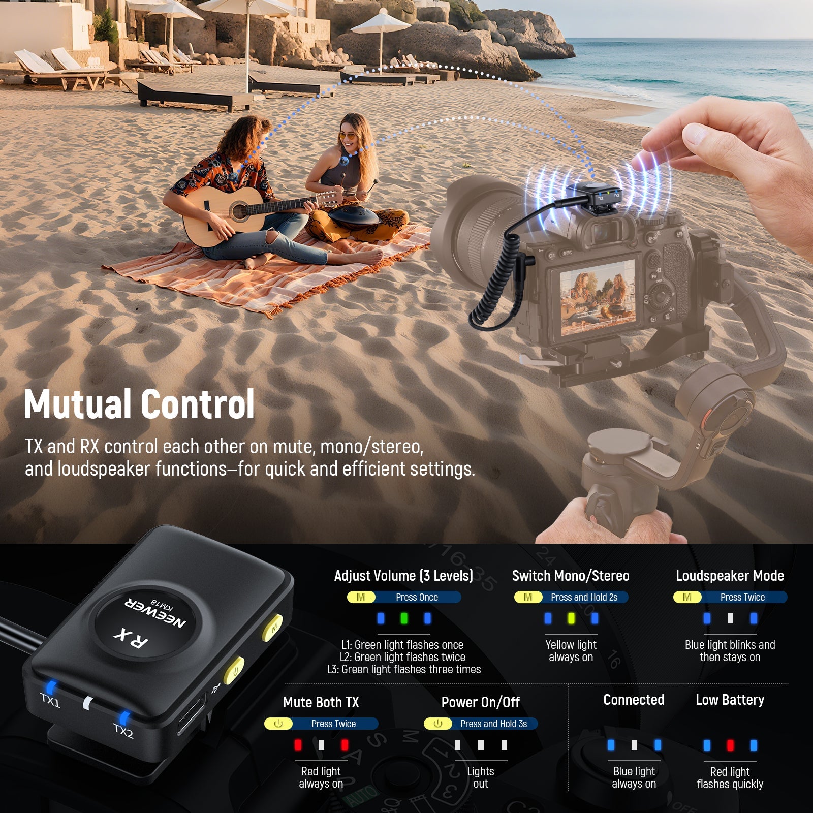 - Noise Cancellation/Mute- On the transmitter, double click to activate -20dB noise cancelling that filters ambient sounds while preserving vocal warmth. A single click mutes it instantly. With an 83dB SNR, your recordings remain clean and detailed even in bustling environments