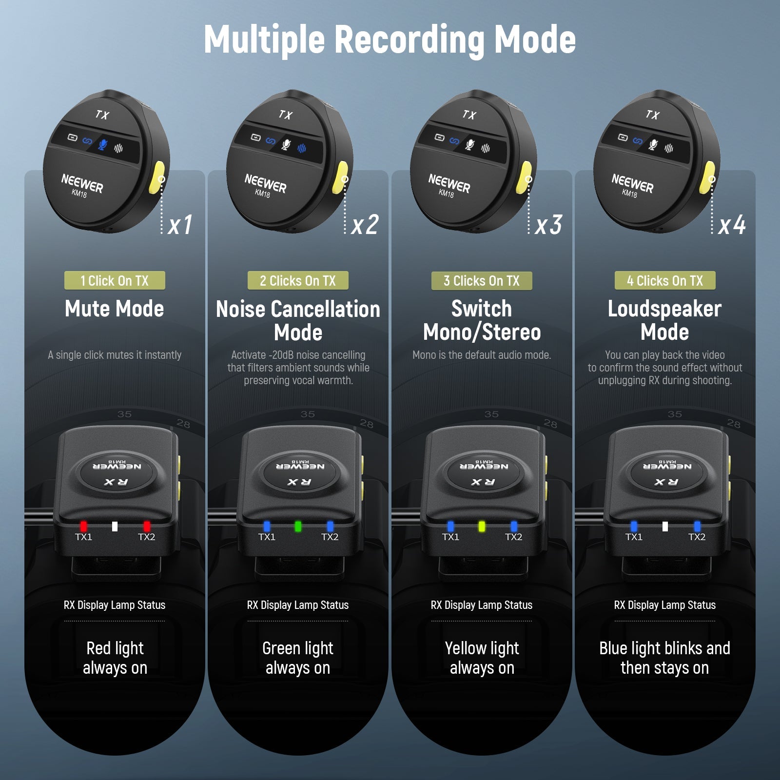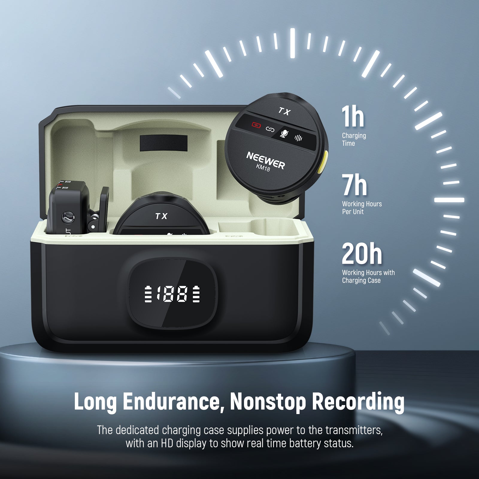 NEEWER KM18 Wireless Microphone with USB C Charging Case for Camera