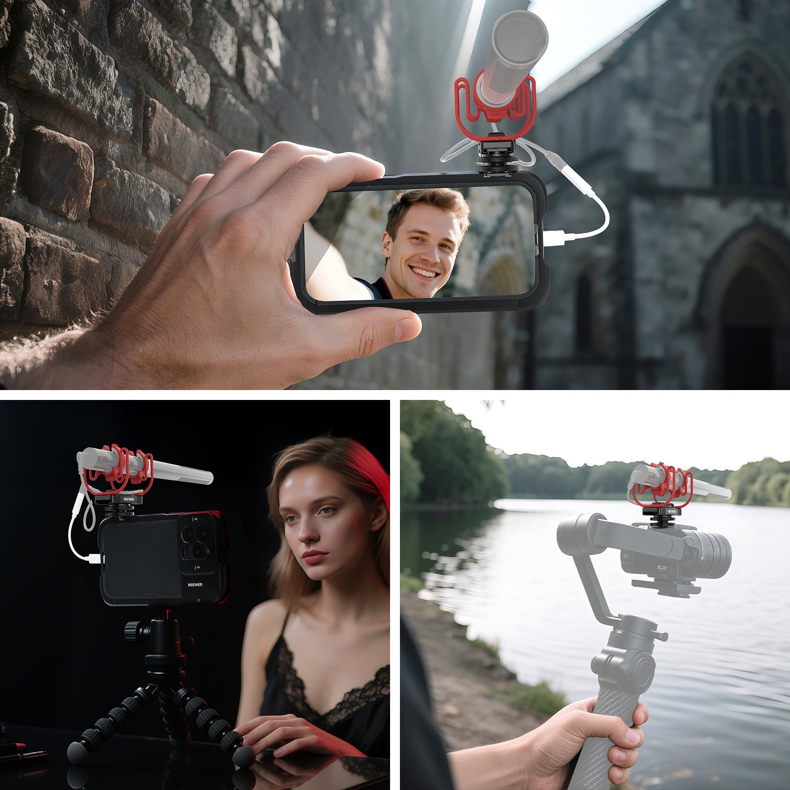 - Universal Cold Shoe & 1/4" Thread- The cold shoe mount and 1/4" thread can connect to cameras, rigs, boom poles, and tripods. It also supports back and forth positioning for weight balancing