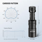 - Patrón de captación supercardioide claro : El patrón supercardioide capta las fuentes de sonido delante y detrás del micrófono, ideal para entrevistas donde se necesita capturar la voz de dos personas. Distancia óptima de captación: 50-100 cm