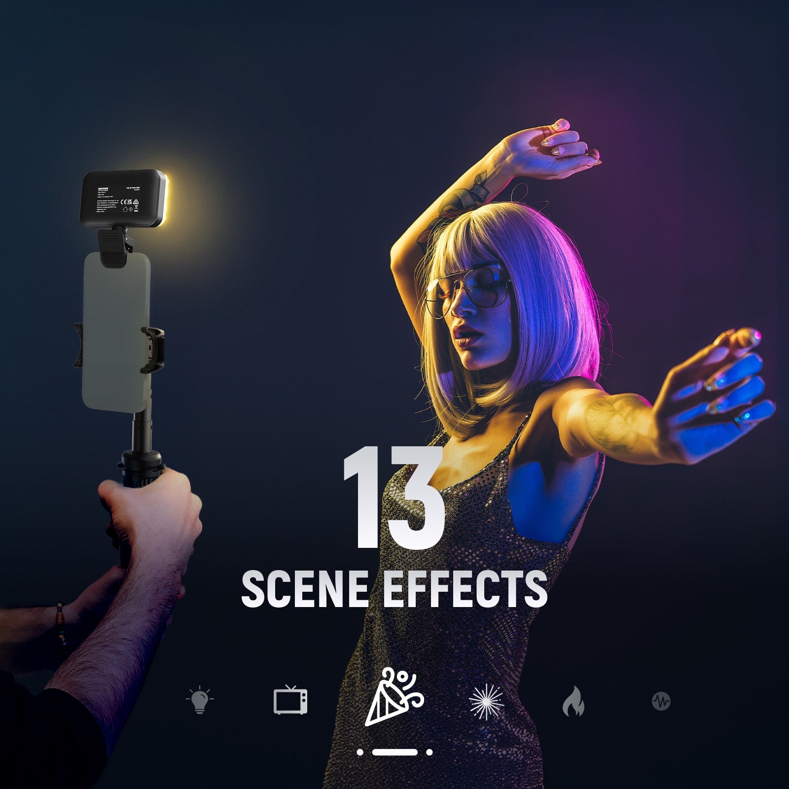 • Lighting Mode: CCT/HSI/FX