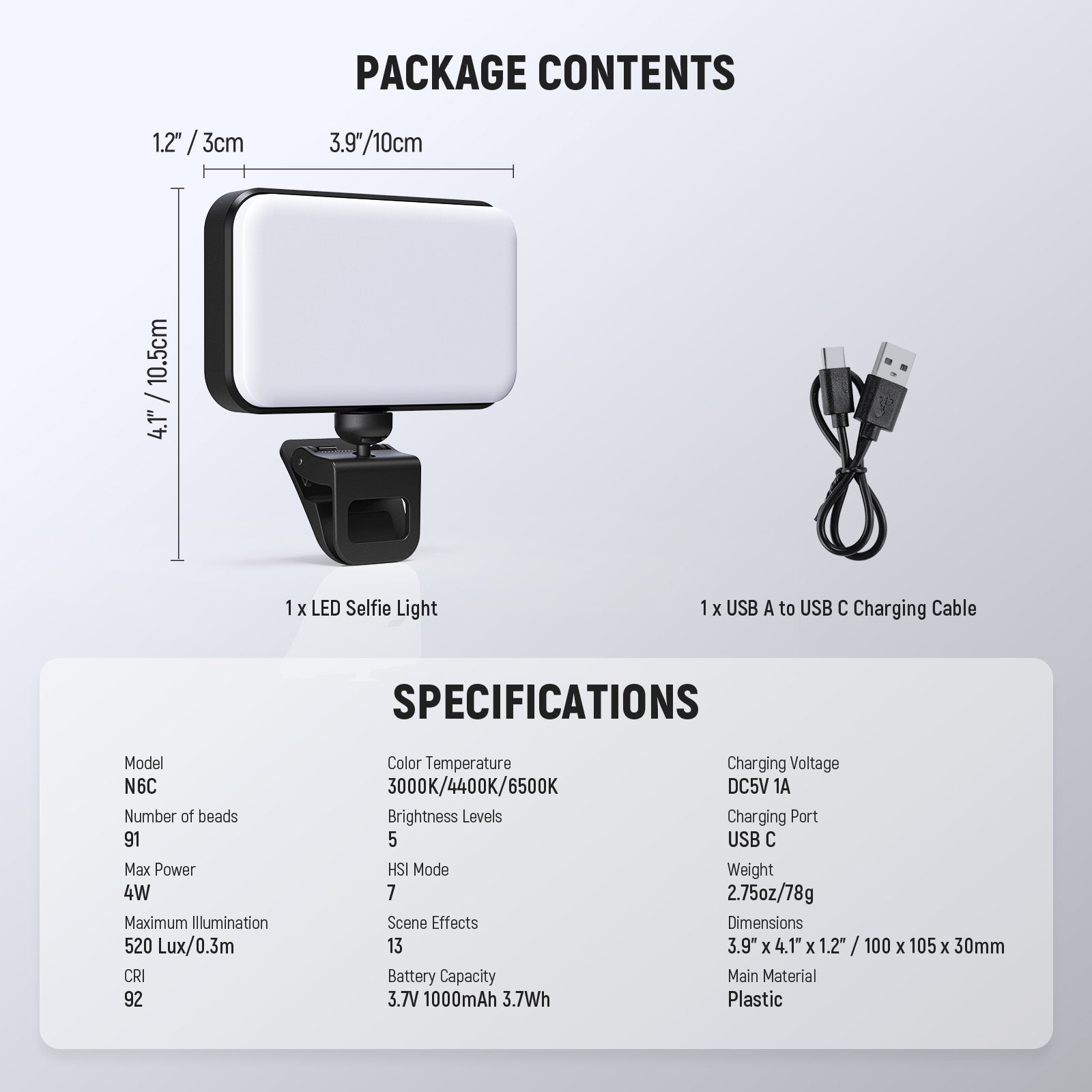 • Rechargeable LED Video Fill Light- The built in 1000mAh rechargeable battery powers the phone video light for up to 96min on a full charge. Easily recharged using a 5V/1A power source (wall chargers, portable chargers, or computers) using the USB Type charging cable, this phone fill light is an ideal choice for effortless on the go content creation as portable creator essential selfie accessories, streamer and influencer must have photography gear
