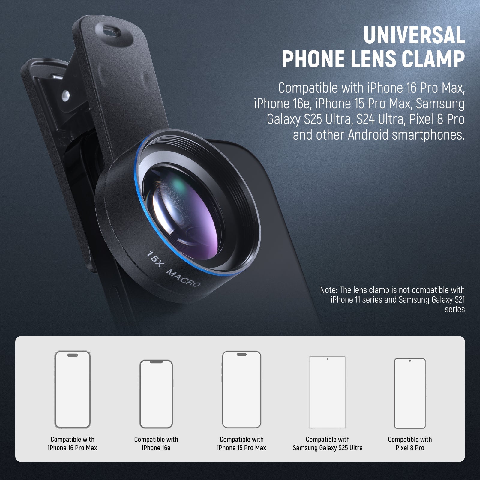 - 37mm Threaded Lens Clamp- The lens clip attaches to various smartphones and features a 37mm thread that securely mounts the macro lens. Compatible with iPhone 16 Pro Max iPhone 15 Pro Max Android Samsung Galaxy S25 Ultra and more. Ideal zoom lens attachment as content creator essential cell phone camera accessories and influencer must have filming photography gear
