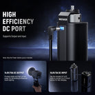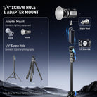 - Orificio roscado de 1/4" y soporte adaptador : Incluye un cabezal de montaje de 1/4" para conectar de forma segura su equipo de iluminación, mientras que el orificio roscado de 1/4" en la parte inferior permite una fácil conexión a un trípode de cámara o un soporte de luz fotográfica, garantizando una instalación segura y sin necesidad de usar las manos. Incluye un cable de CC a CC y un cable USB-C a USB-C PD para una conexión sencilla con diferentes dispositivos (Luces/soporte NO incluidos).