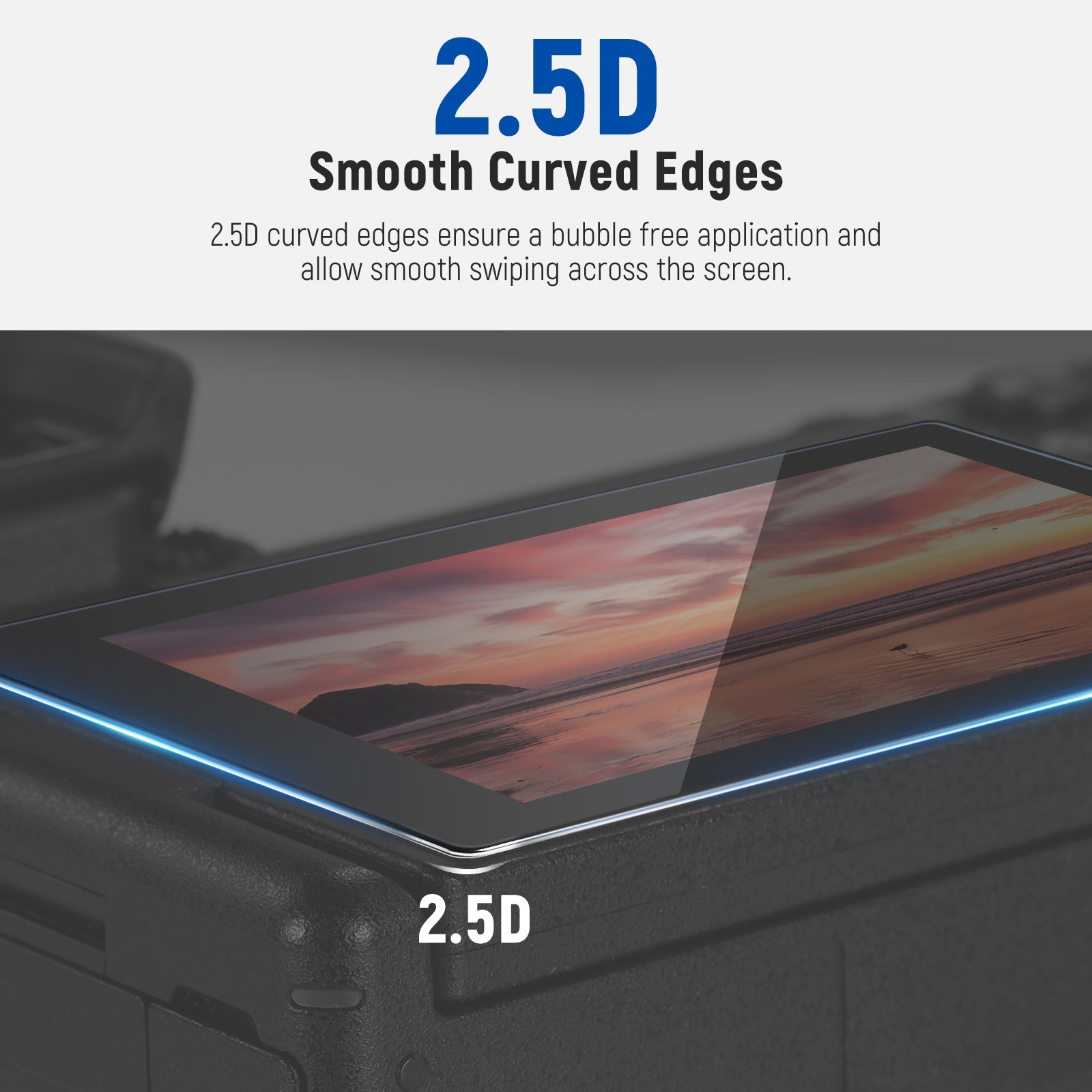 - Bordes curvos suaves 2.5D : los bordes curvos 2.5D garantizan una aplicación sin burbujas y permiten un deslizamiento suave por la pantalla.