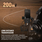 - Transmisión estable de 200 m (656 pies) : En zonas sin obstáculos, garantiza una transmisión inalámbrica fluida de 200 m (656 pies) para una grabación de audio estable y mayor resistencia a las interferencias. Nota: El alcance de transmisión varía según la ubicación. Los pequeños micrófonos de solapa son un kit de herramientas portátil esencial para creadores de contenido de TikTok, YouTube e influencers.