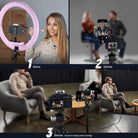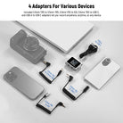 - Receptor Plug & Play para tres dispositivos : Este micrófono de solapa plug and play no requiere aplicación. Con dos adaptadores OTG y un cable de audio TRS de 3,5 mm, el receptor conecta hasta tres dispositivos simultáneamente y es compatible con iPhone, iPad, smartphones y tablets Android, portátiles, ordenadores, cámaras DSLR y videocámaras. Al trabajar con dos dispositivos, admite monitorización de audio simultánea, reducción de ruido y silenciamiento.