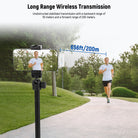• Ajuste de volumen y cambio de modo : Los transmisores admiten 5 niveles de ajuste de volumen. Con un solo clic en el botón de función, el volumen se ajusta de 1 a 5 niveles. Mantenga pulsado el botón de función para activar el modo de cancelación de ruido y pulse brevemente el botón de encendido para activar el modo de silencio. Fácil de usar: un solo clic para iniciar. Los mini micrófonos corporales admiten una transmisión estable sin barreras de hasta 200 m (656 pies) hacia adelante y 20 m (65 pies) hacia atrás.
