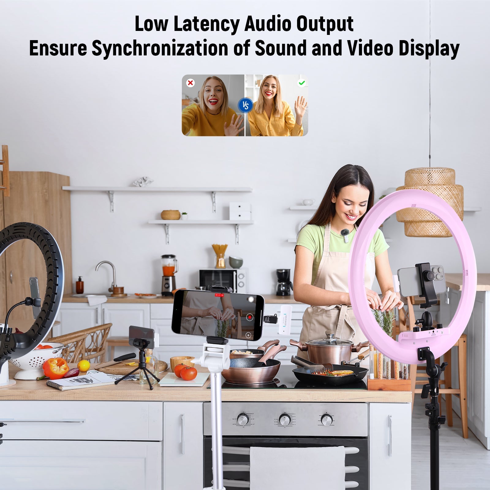 • Compatible con múltiples dispositivos con baja latencia : el sistema de micrófonos inalámbricos KM20 incluye 2 transmisores y 4 receptores, y admite 4 dispositivos simultáneamente para transmisión en vivo y grabación en múltiples plataformas con baja latencia. No requiere Bluetooth ni aplicación. Los transmisores inalámbricos son compactos, con clip posterior y pesan solo 10,7 g/0,4 oz. Se adaptan a camisas y cuellos para un perfil bajo, o se pueden usar en la mano. El estuche incluido es práctico para guardarlos y es portátil para videografía en exteriores.