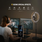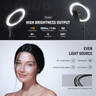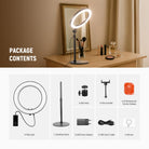 - Soporte de escritorio ajustable y ángulo de iluminación de 360° : nuestro kit de anillo de luz con halo circular para selfies contiene un soporte de escritorio que va de 11" a 18"/29 a 45 cm y un cabezal esférico de 360°. Adapte fácilmente la altura deseada y gírelo para encontrar un ángulo de iluminación óptimo. Ya sea que sea un streamer, un maquillador o trabaje en un escritorio, haciendo videoconferencias con la cámara web de una computadora portátil o filmando videos, esta configuración ajustable brinda la flexibilidad que necesita.