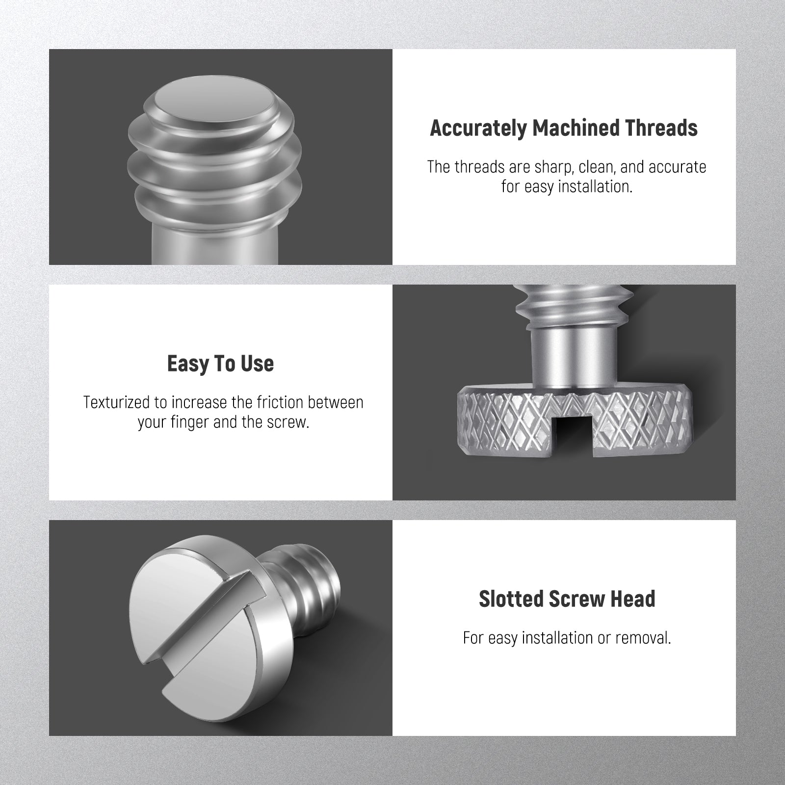 - Compatibilidad más amplia : los tornillos ranurados de 1/4'' son compatibles con placas de montaje de cámara, placas de liberación rápida, trípodes, monopiés y soportes para cámara y telescopio con orificios roscados de 1/4''