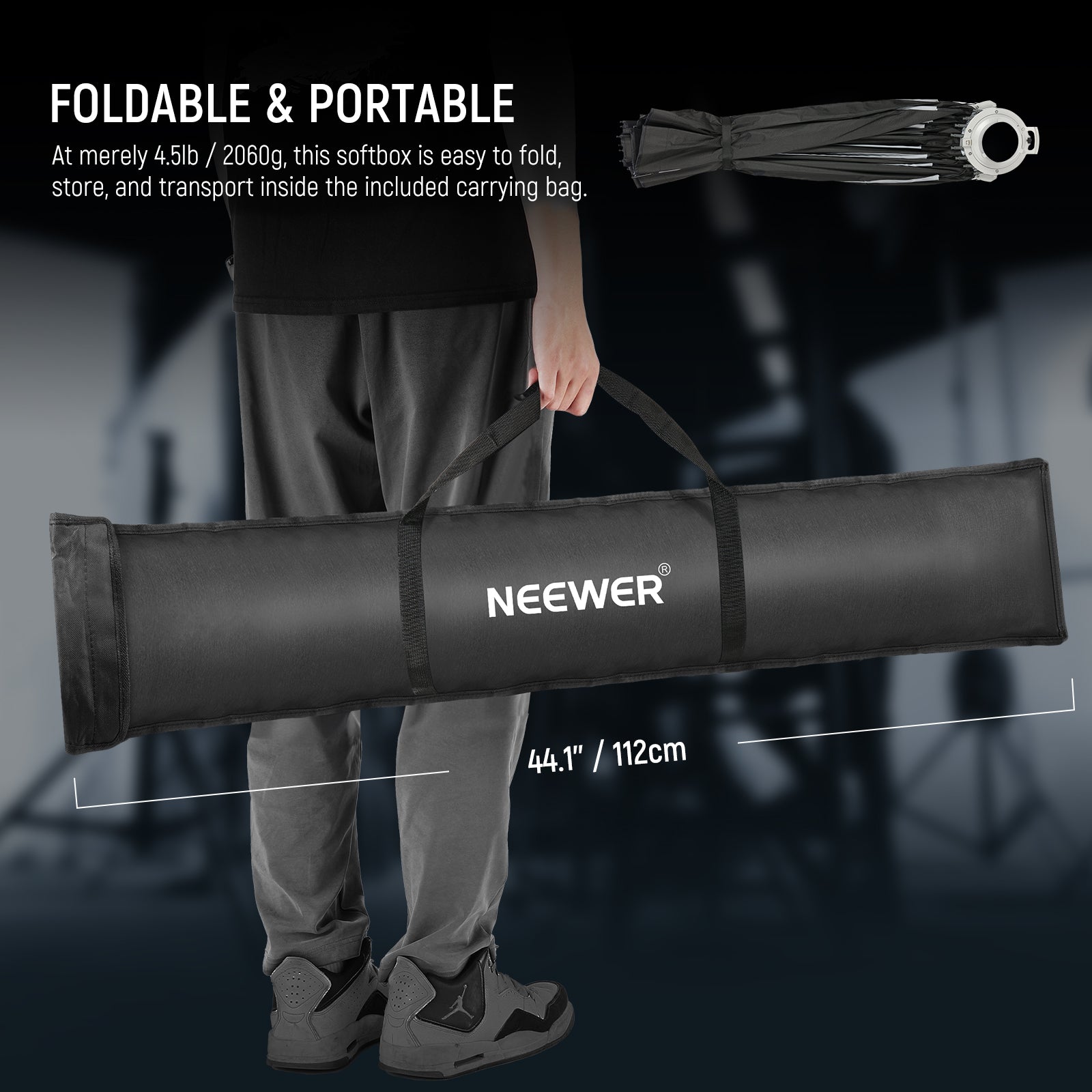 - Foldable & Portable- At merely 2.6lb/1190g, the parabolic softbox is easy to fold, store, and transport inside the carrying bag. Ideal equipment kit for lights on portraits, product photo, beauty & fashion shoots, filming, studio camera photoshoot, wedding films, corporate headshots, and other photography styles as content creator essential lighting accessories and influencer must have