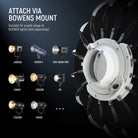 - Attach Via Bowens Mount- Connecting via Bowens mount, the softbox is compatible with Aputure 120D, compatible with Godox SL60w, compatible with SmallRig RC 120D RC 120B and NEEWER Q4, AS600B, CB300B, CB300C, CB200, CB200B, CB60, CB60B, S101-300W PRO, S101-400W PRO, S102-400W PRO, Vision 4, Q300, and other studio strobe photography videography lighting gear and continuous LED video lights with Bowens mount