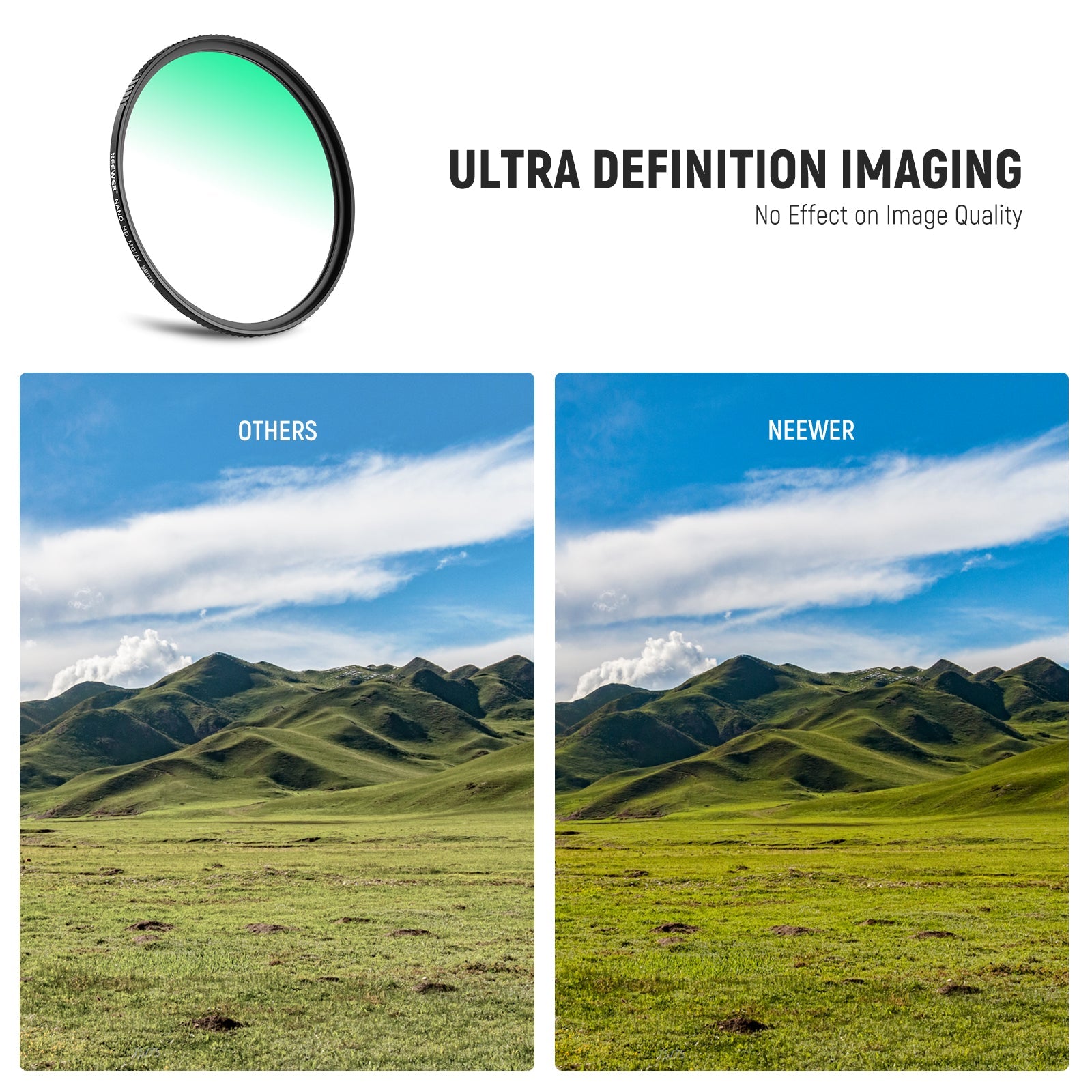 - Bloqueo de luz UV: este filtro UV bloquea la entrada de rayos ultravioleta a la lente de su cámara y elimina la neblina azul, especialmente para sensores de cámara menos sensibles. Imprescindible para la fotografía de paisajes al aire libre en días soleados o en altitudes elevadas con luz ultravioleta intensa, como en el desierto y en la playa, para ofrecer un efecto natural muy claro.