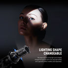 • Forma de iluminación modificable : el modificador de efecto de geometría y los deflectores de luz de cuatro direcciones integrados permiten un ajuste flexible de formas de iluminación triangulares y cuadrangulares, lo que permite patrones de luz rectos, triangulares, cuadrados y rectangulares. También está disponible para su compra un modificador de control de apertura independiente, que le permite ajustar el tamaño de la salida de apertura circular según sea necesario.