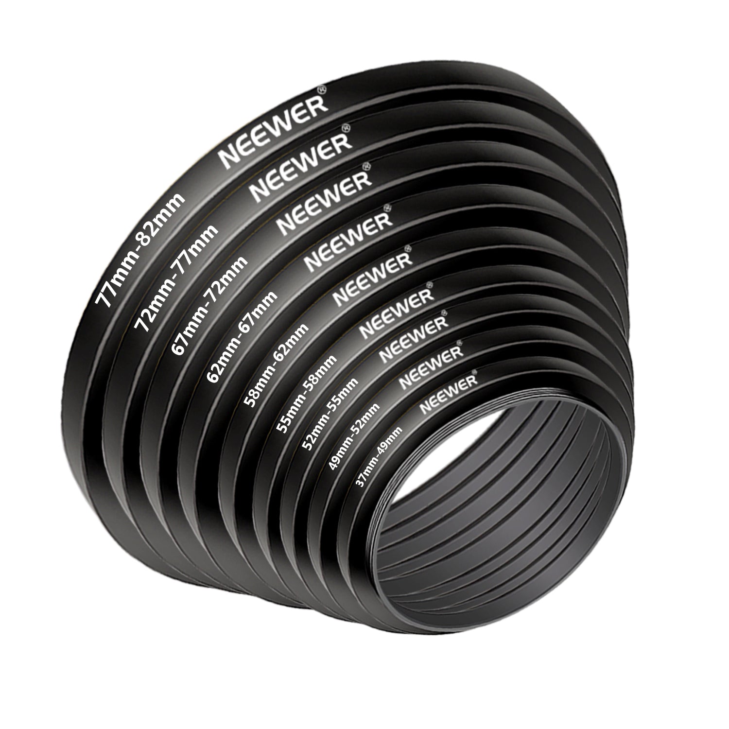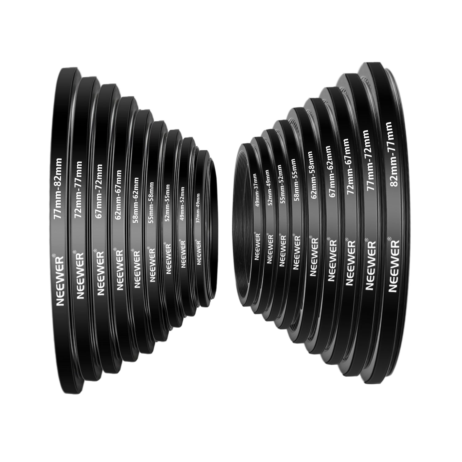NEEWER Kit de Anillo Adaptador de Filtro de Lente de Cámara de Metal de 18 Piezas