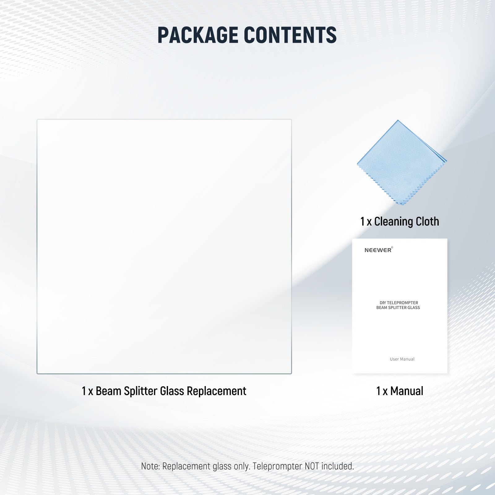 - Vidrio teleprompter profesional : el divisor de haz de cubo de alta definición NEEWER está construido con la mejor artesanía para un reflejo cristalino. Es perfecto para utilizar teleprompters en producciones de video, educación, aprendizaje electrónico, eventos en vivo, redacciones tradicionales, estudios de televisión, etc., permitiendo un flujo constante de información mientras se enfoca en atraer o interactuar con la audiencia. Nota: sólo vidrio divisor de haz.