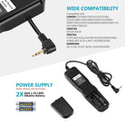 - Este temporizador digital es remoto y está diseñado para activar el obturador de la cámara con intervalos de tiempo regulares, e incluye un temporizador automático, un temporizador de intervalos, un temporizador de exposición prolongada y ajustes de recuento de exposición.