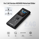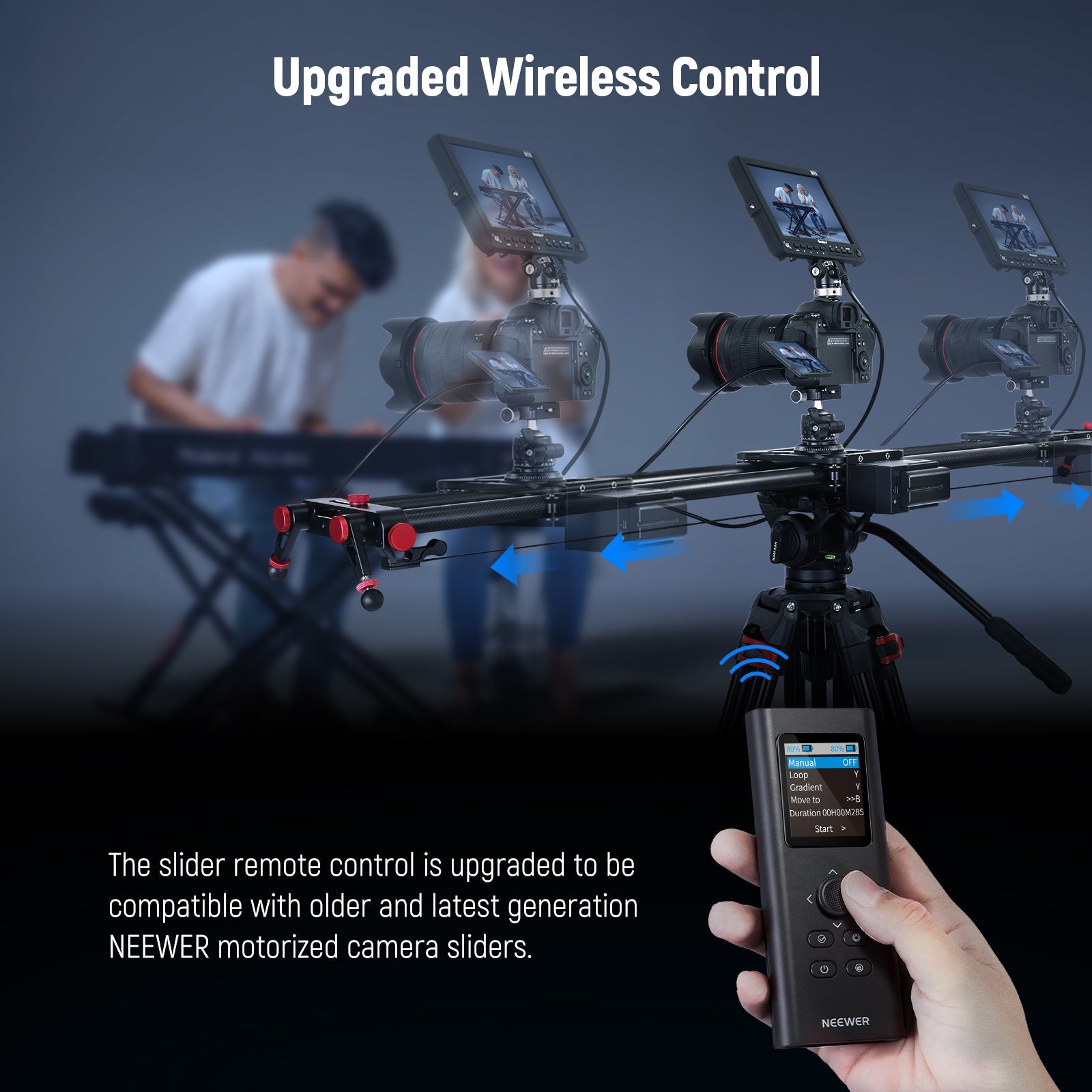 - Control inalámbrico mejorado: el control remoto deslizante se ha actualizado para ser compatible tanto con la generación anterior como con la generación más nueva de controles deslizantes de cámara motorizados NEEWER, incluido el control deslizante de cámara motorizado VS-80WC/VS-100WC 2.4G y el control deslizante motorizado controlado por aplicación de la serie ER1. (ER1-120, ER1-100 y ER1-80). Obtenga uno ahora para emparejarlo con su control deslizante NEEWER para lograr un control sencillo