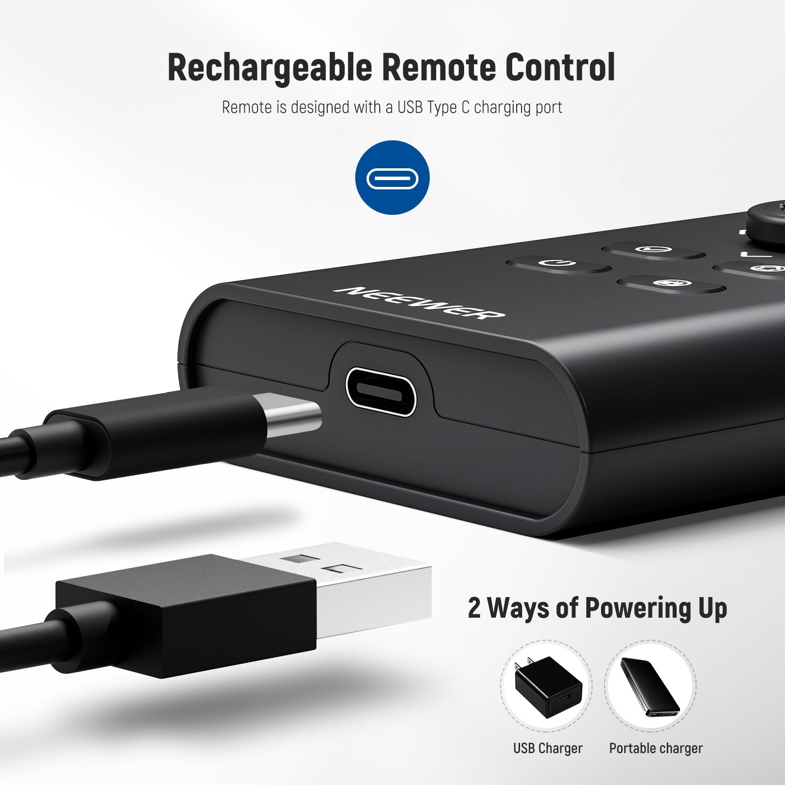 - Control remoto recargable: a diferencia de los controles remotos tradicionales que funcionan con baterías desechables, este control remoto deslizante mejorado está diseñado con un puerto de carga USB tipo C. Cargue rápidamente el control remoto conectándolo a un cargador de pared o a un cargador portátil con salida DC5V/1A.
