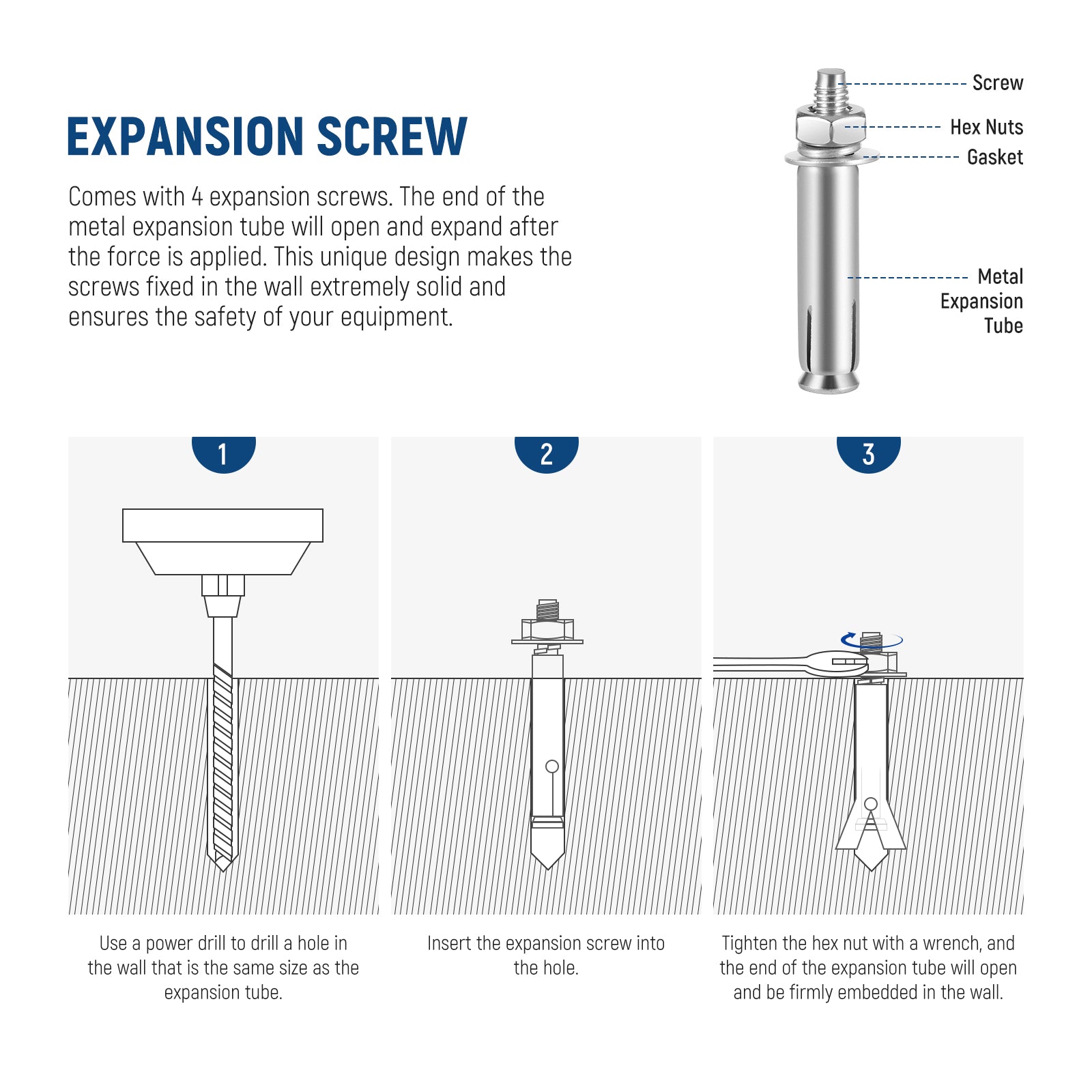 - Anclajes incluidos : viene con 6 tornillos autorroscantes y 4 tornillos de expansión que garantizan una instalación segura y sencilla. Los destornilladores y taladros no están incluidos.