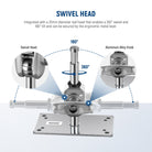 - Cabezal esférico ajustable y pasador para bebé de 5/8" : integrado con un cabezal esférico de 35 mm de diámetro que permite un giro de 360° y una inclinación de 180° y se puede asegurar con una palanca metálica ergonómica. El pasador para bebé superior tiene una longitud de 3"/7,6 cm se puede fijar firmemente a soportes de iluminación, brazos articulados, abrazaderas y adaptadores con un receptor de 5/8"
