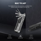 - Construidas para durar : fabricadas con aleación de aluminio anodizado y acero inoxidable, estas herramientas procesadas con alta precisión CNC garantizan sus especificaciones exactas, soportan el uso frecuente y resisten rayones, para un uso más efectivo, duradero y confiable a lo largo del tiempo.