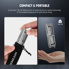 - Diseño plegable de bolsillo : con solo 2,6 oz/74 g, esta multiherramienta para cámara garantiza un acceso fácil y gratuito a las ocho herramientas plegables siempre que las necesite con su diseño plegable de 3,4"x1,1"x0,4"/85,6x27,3x11 mm que cabe en un bolsillo. También incluye una bolsa de viaje/almacenamiento de alta calidad.