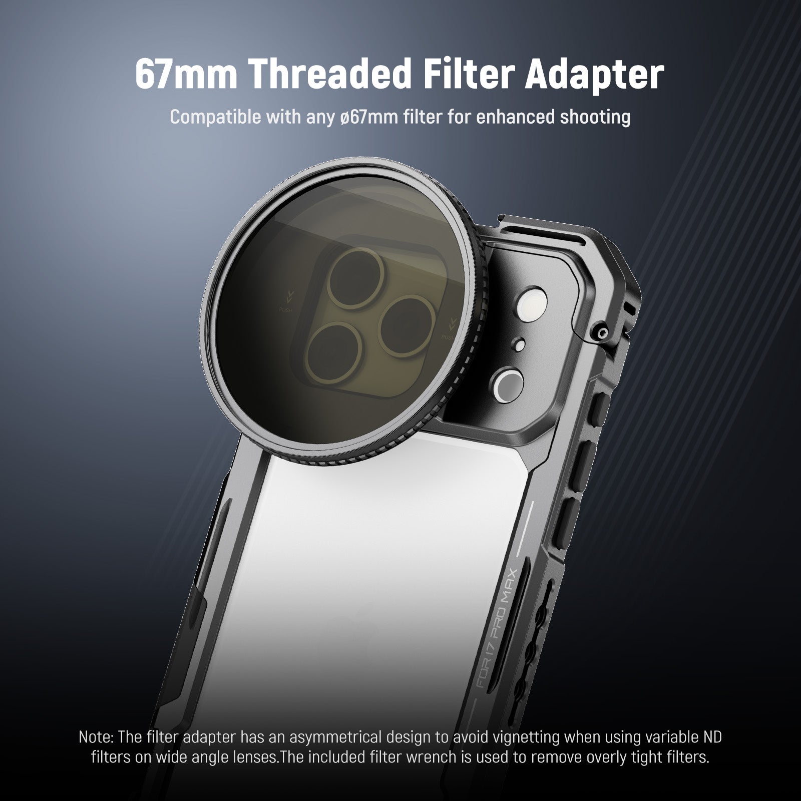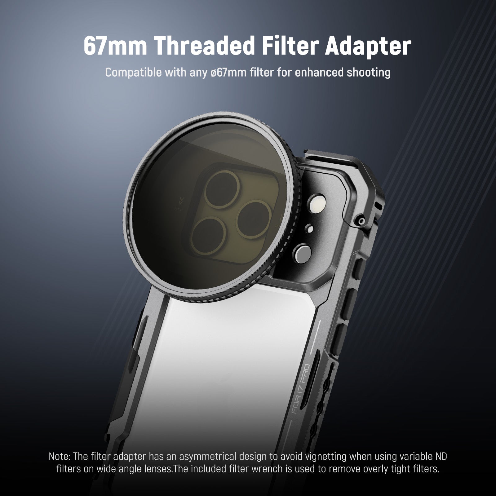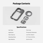 - 17mm Phone Lens Backplate - Mounts 105mm macro, 10x macro, 8mm fisheye, 45x microscope with LED light, 7x telephoto, 60mm telephoto, 18mm wide angle, 1.55x blue anamorphic, and other 17mm threaded NEEWER phone attachment lenses to the Main Camera and Telephoto Camera (lenses sold separately)