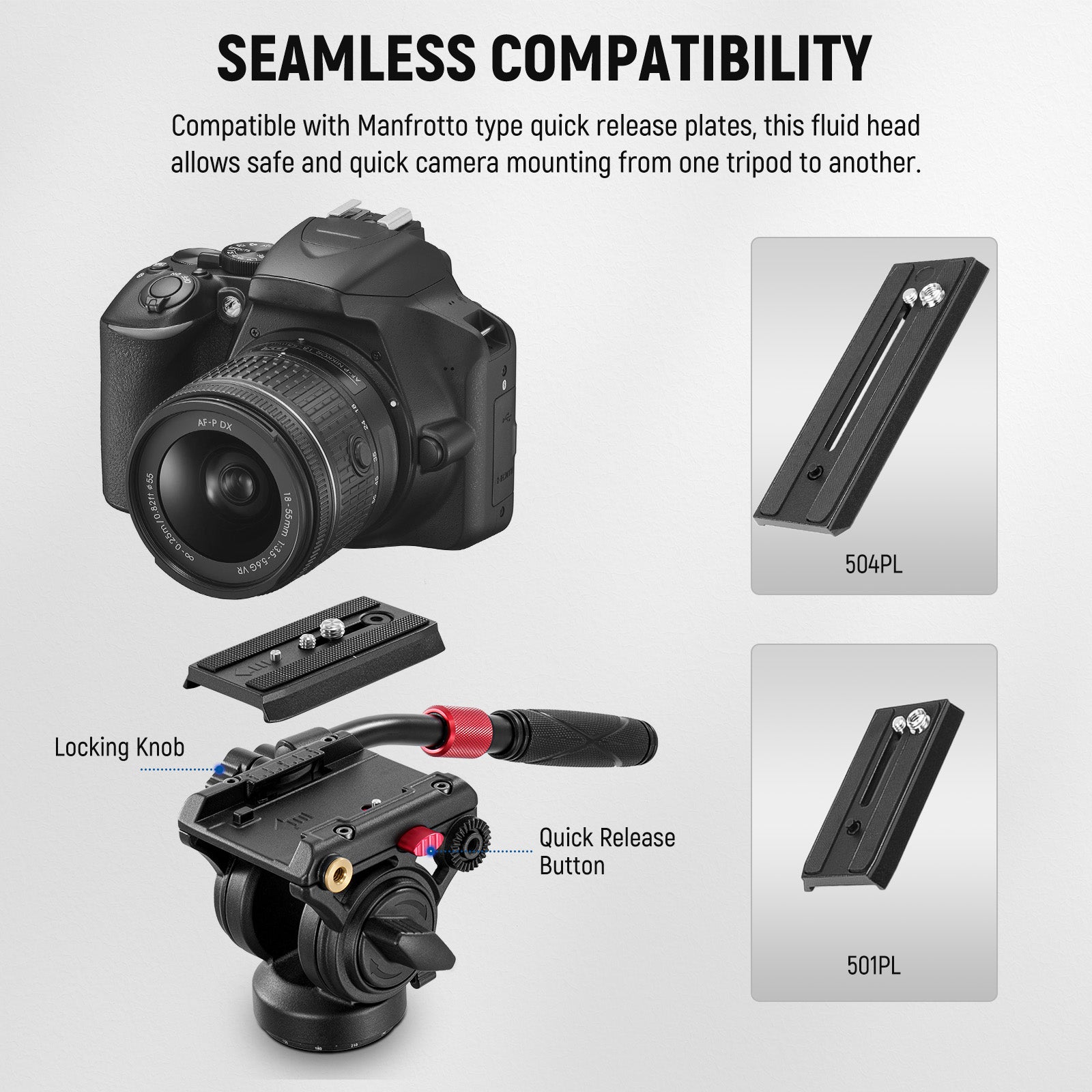 NEEWER GM001 Cabezal fluido para trípode de vídeo resistente de metal