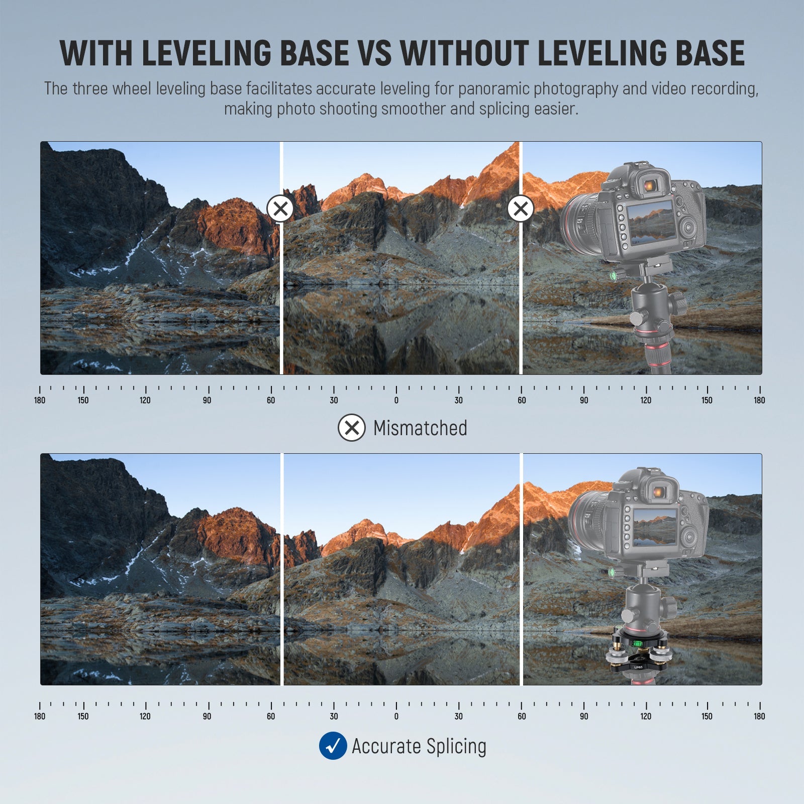 - Construcción totalmente de metal : hecha de aleación de aluminio de grado aeronáutico con tratamiento de mecanizado CNC anodizado negro, la base niveladora profesional es robusta y está diseñada para durar, y soporta con confianza 33 lb / 15 kg con facilidad.