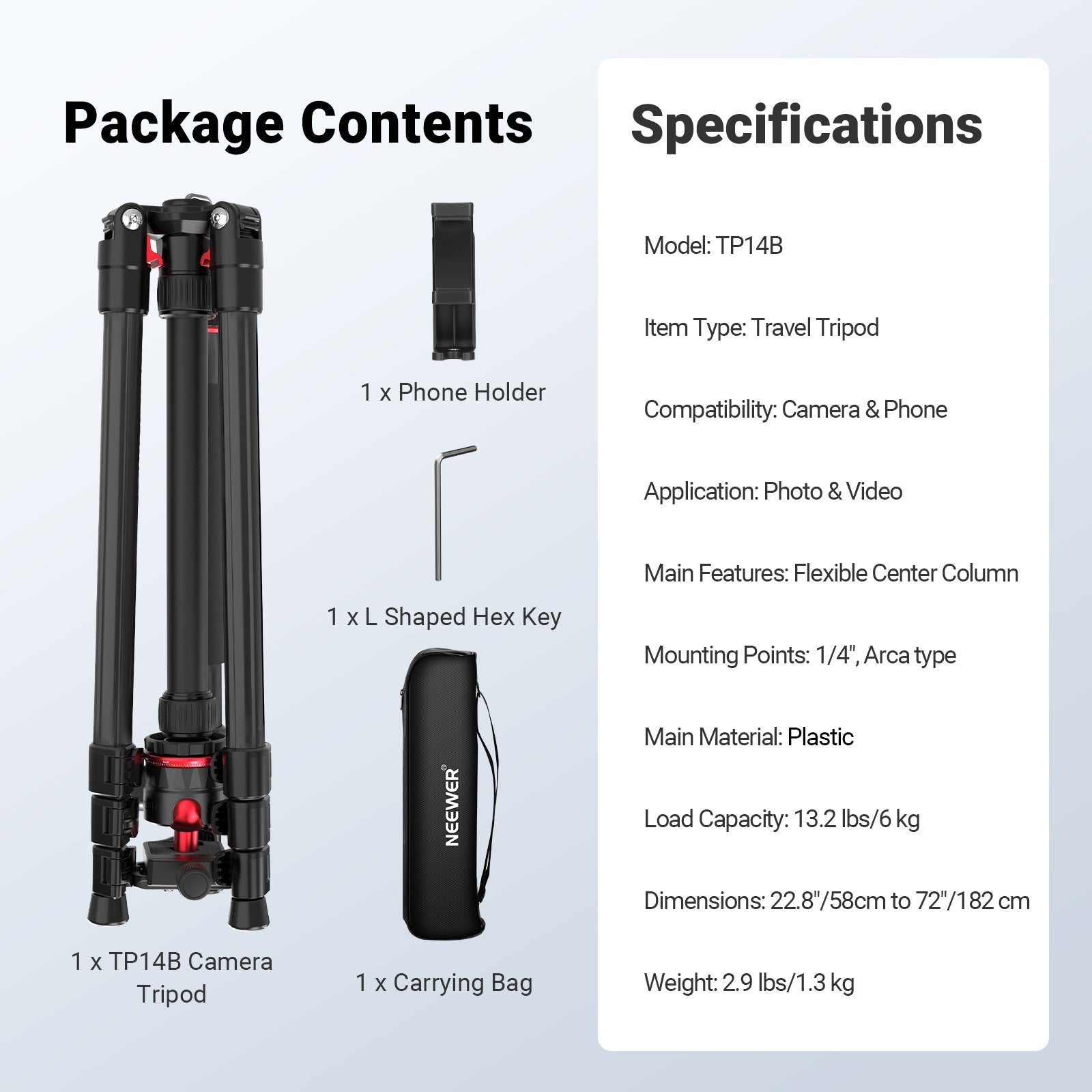 NEEWER Entry Level Version TP53 Metal Travel Tripod