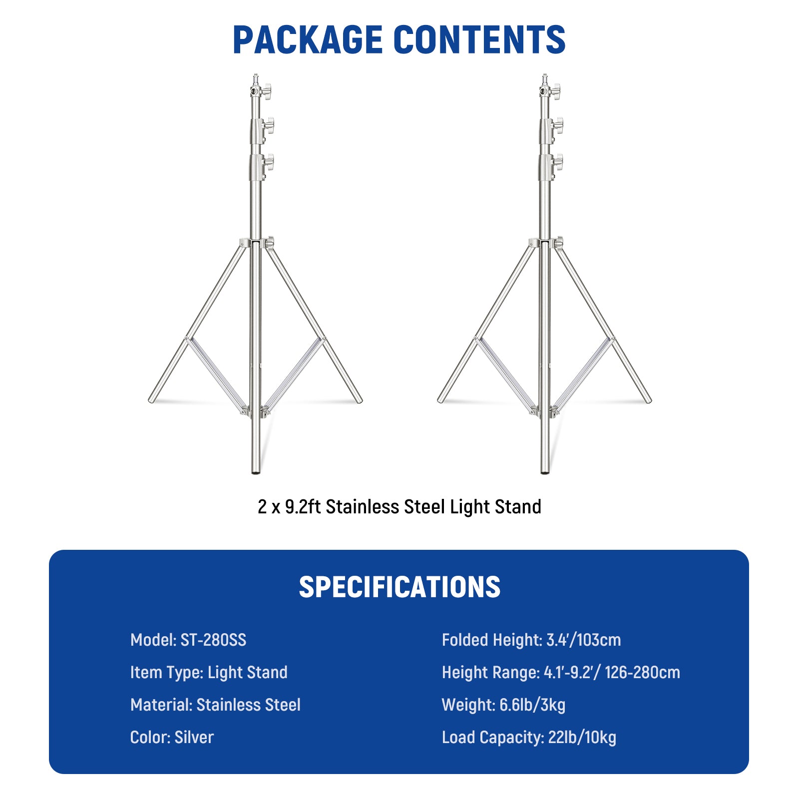 Soporte de luz para fotografía de acero inoxidable NEEWER ST-200SS (paquete de 2) de 200 cm