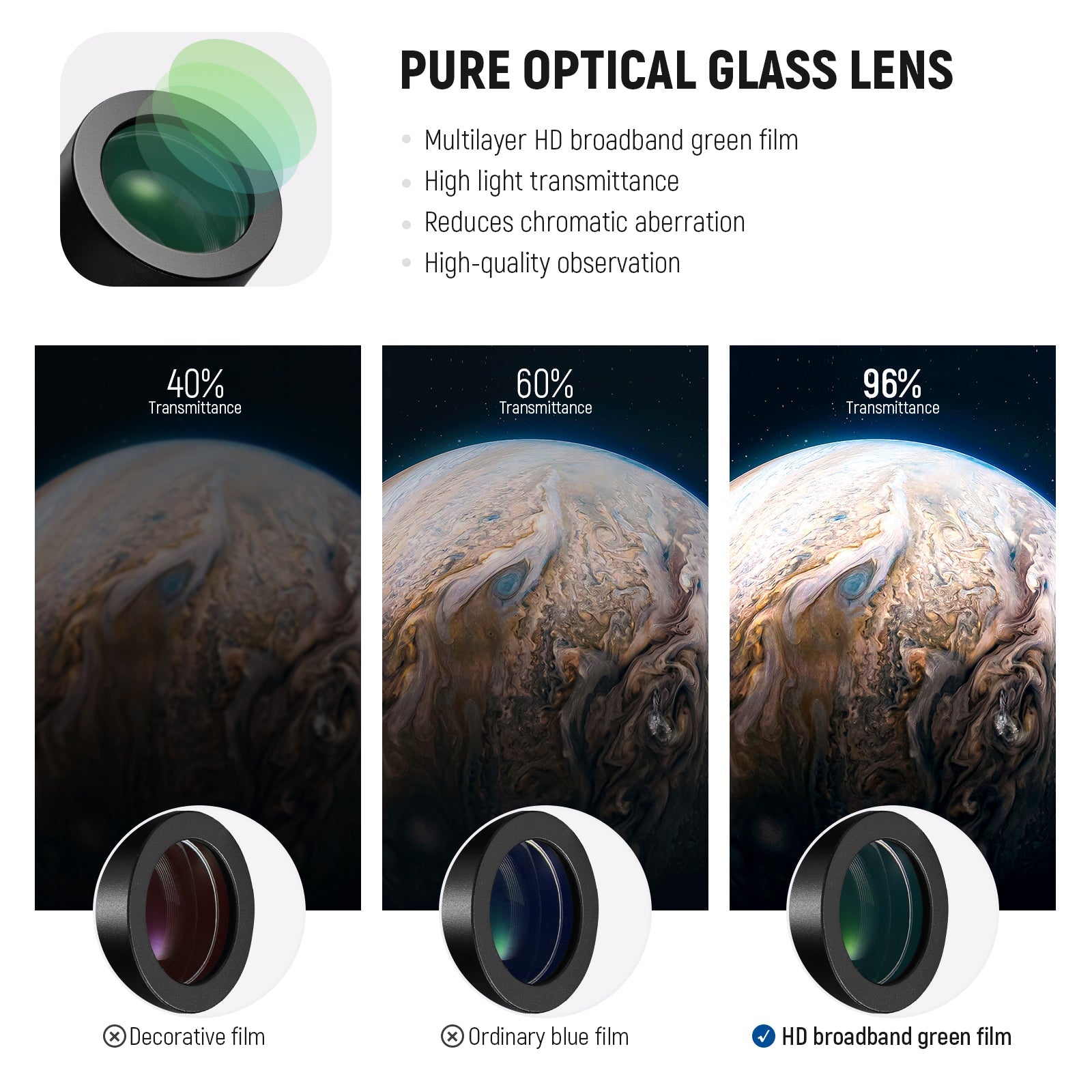 - La lente Barlow 2X adopta vidrio óptico multicapa; la carcasa está ennegrecida para maximizar el contraste de la imagen; Ambos hacen que la imagen sea más nítida y nítida sin aberración cromática adicional.